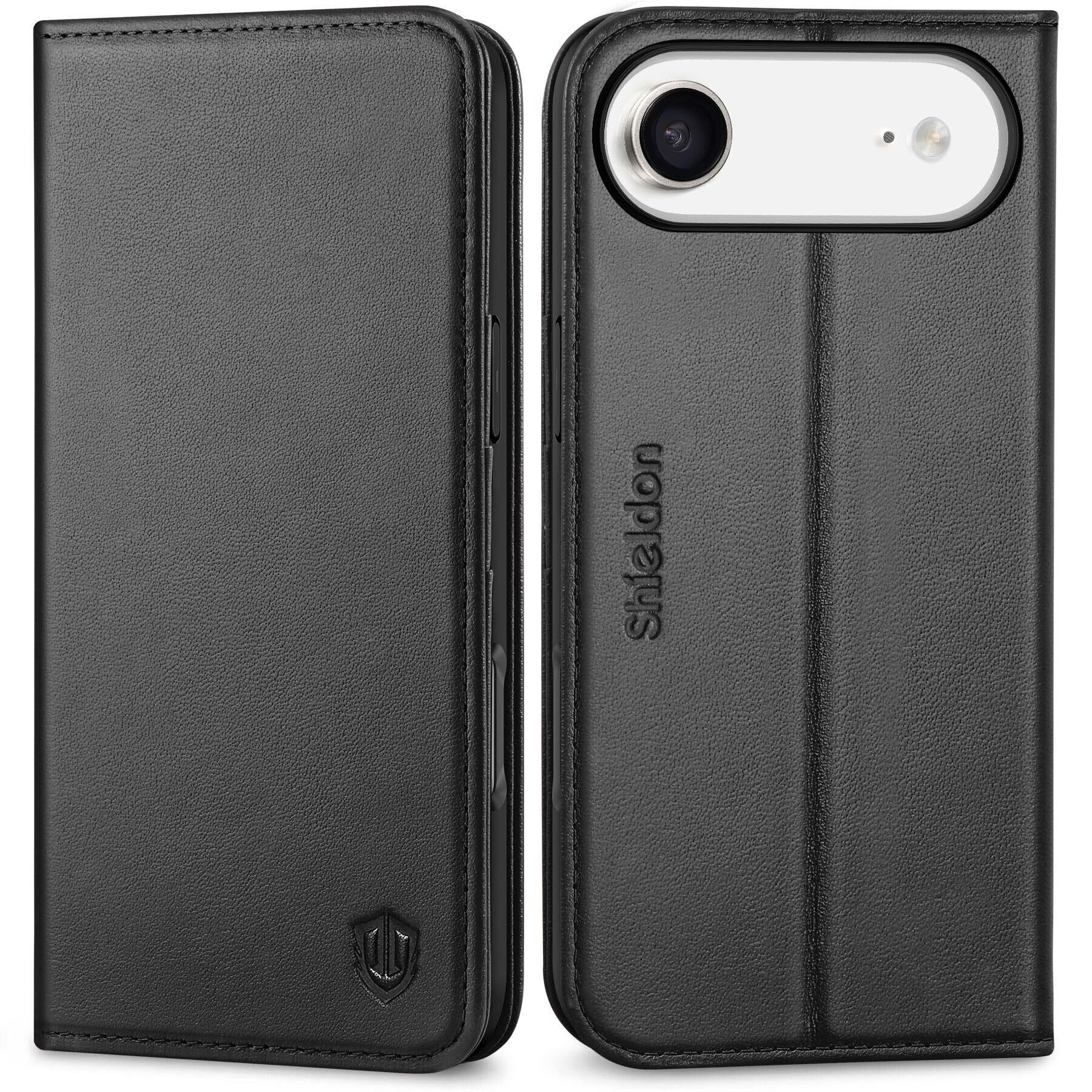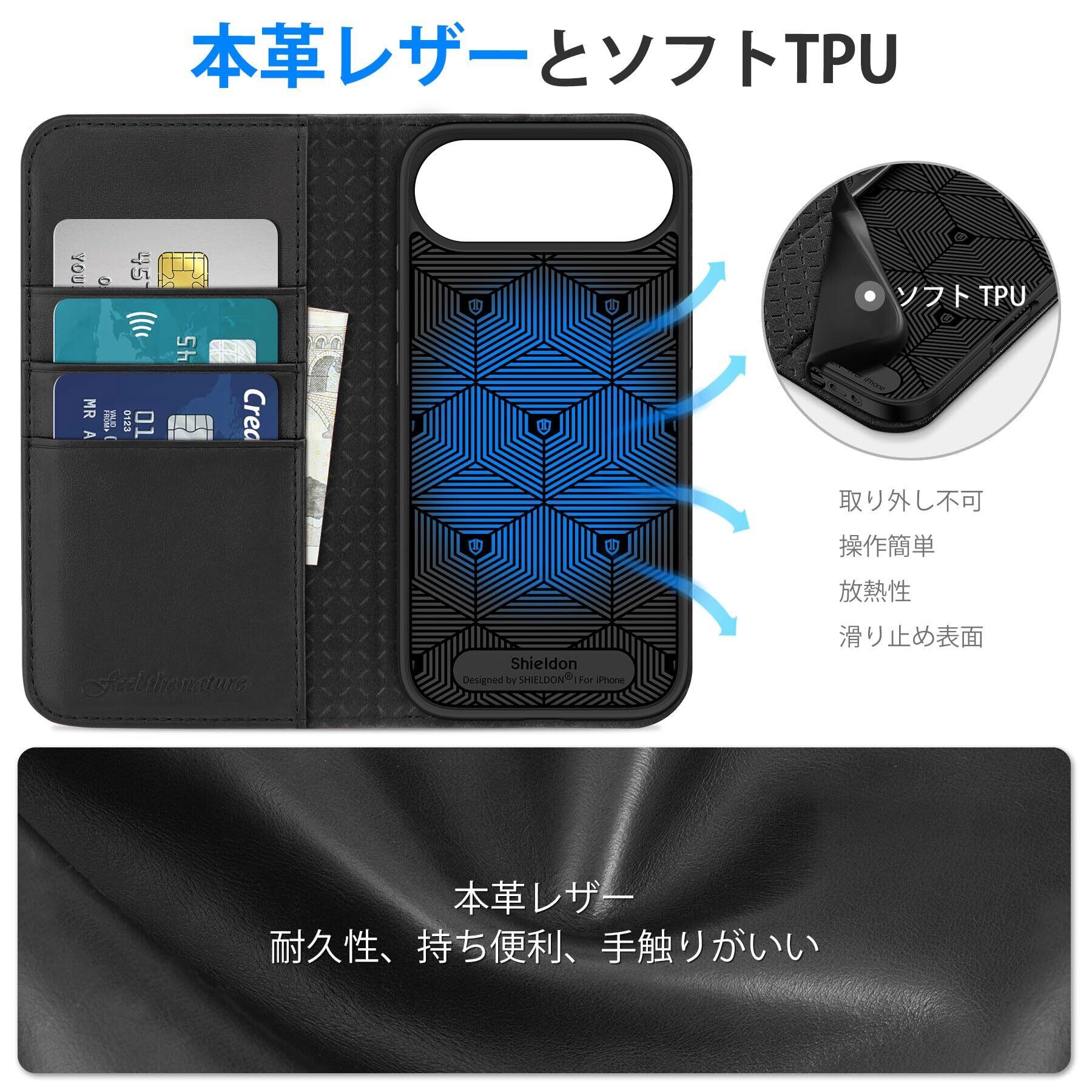 SHIELDON iPhone Air 対応 手帳型ケース 本革レザー 6.5インチ 5G TPU素材 カード収納 [RFIDブロッキング] 横置きスタンド機能 マグネット内蔵 ストラップ穴付き 衝撃吸収 あいふぉん Air 対応スマホケース 2025年発売 ブラック