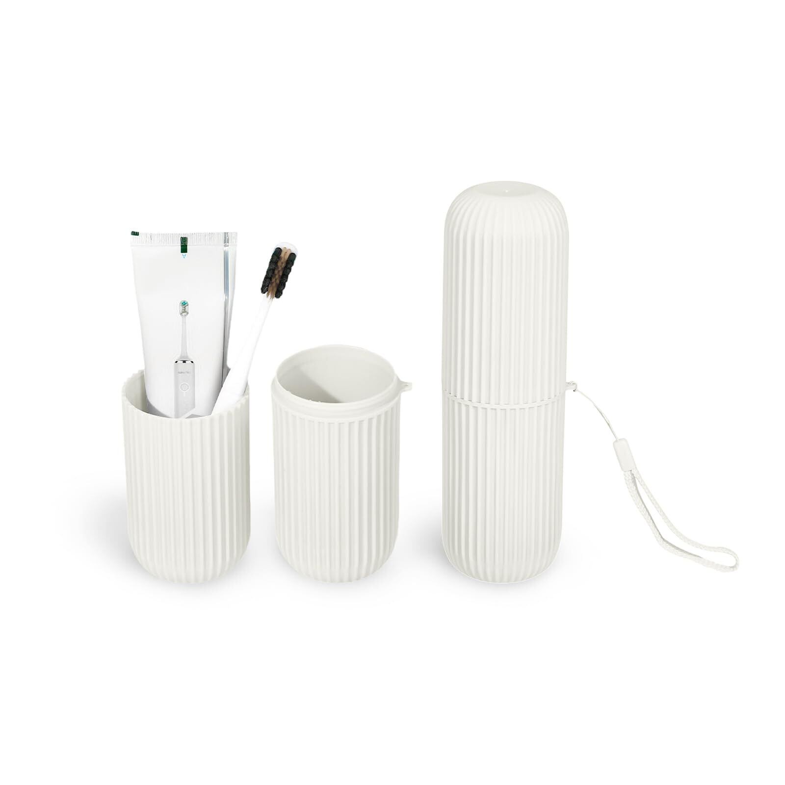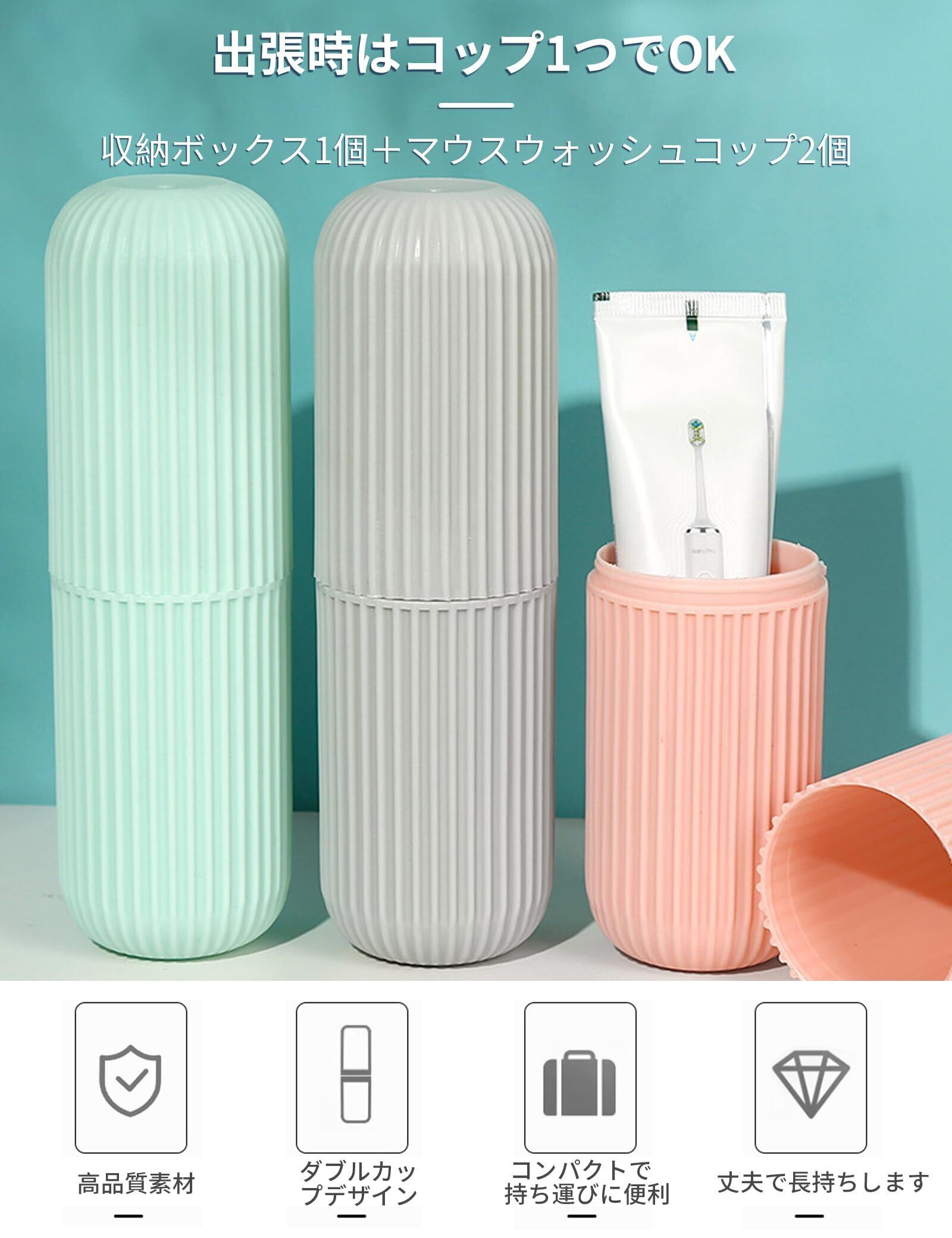 【2 in-1デザイン】歯ブラシと歯磨き粉を収納できる2-in-1歯ブラシケース、マウスウォッシュコップなど歯のケアに必要な小物も収納できます。