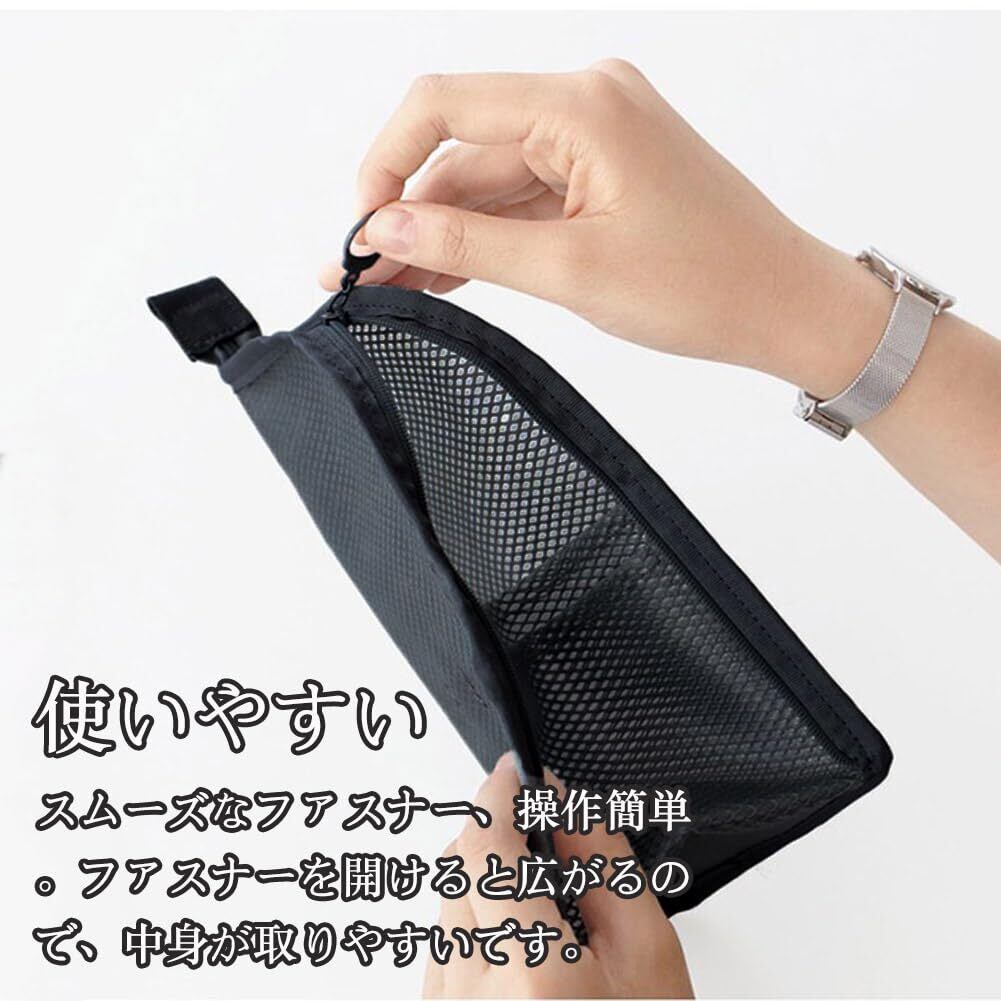 使いやすい:半透明で中身が分かりやすいです。ファスナーを開けると広がるので、中身が取りやすい。これの利点の一つです。シンプルなデザインで学生の方には旅行時に持っていく旅行用品としてはもちろん、社会人の方にも出張のお供のトラベル用品としてもできます。