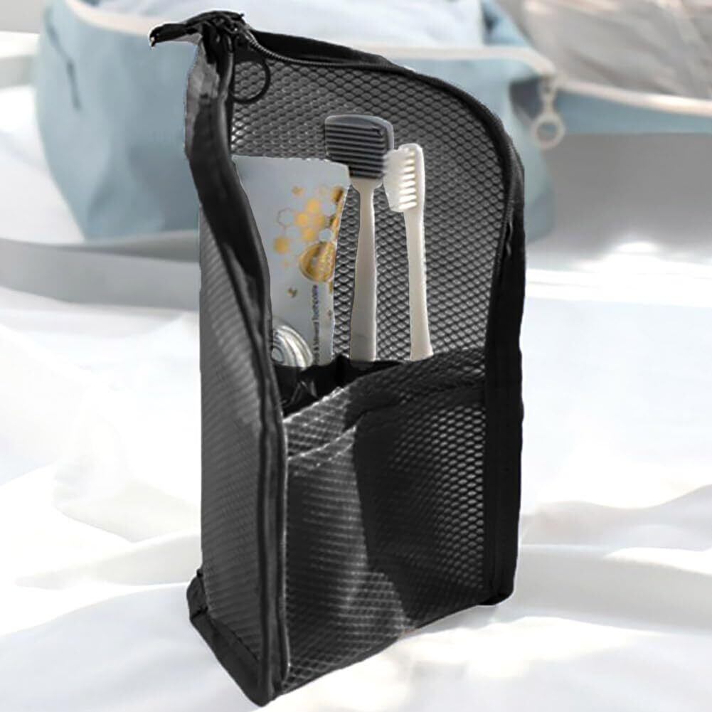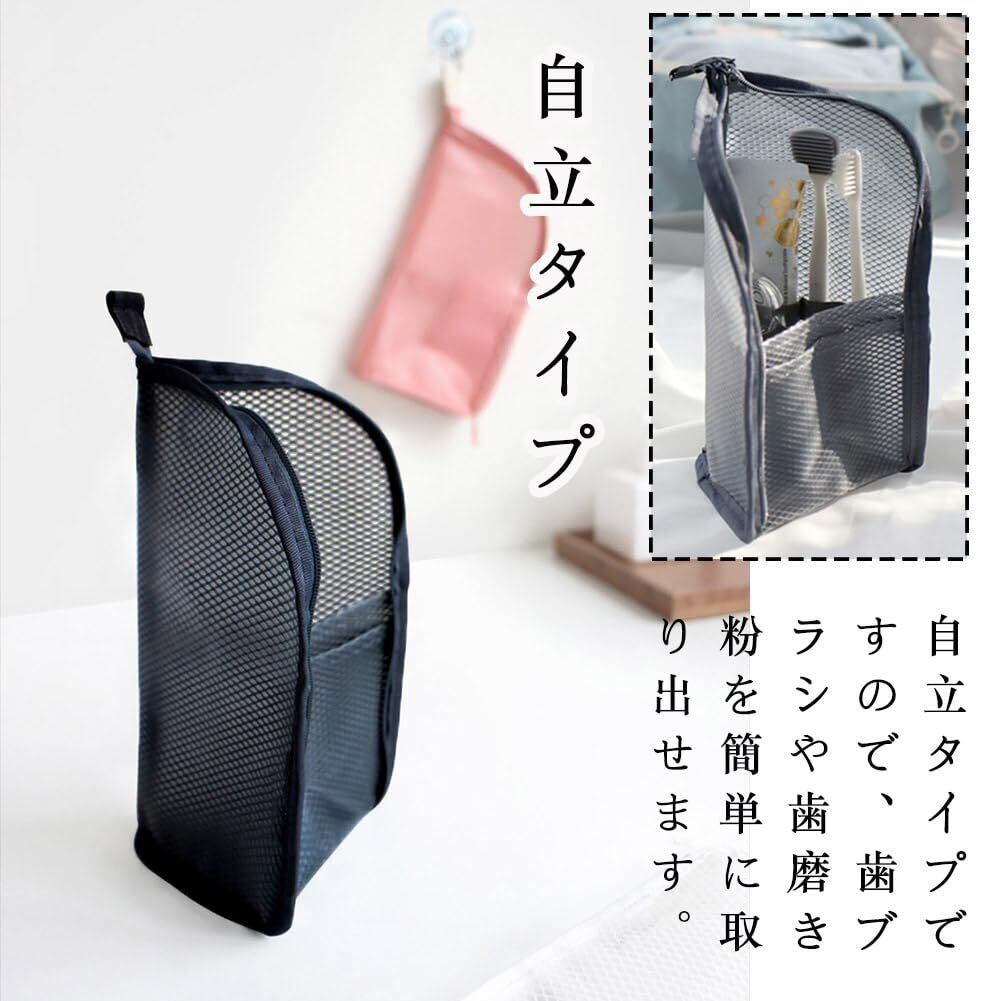 歯ブラシケース 歯ブラシポーチ 防水 速乾 立てられる 使いやすい 歯ブラシ収納バッグ 軽量 持ち運びに便利 トラベルグッズ 多機能 化粧筆 洗面用具 収納 男女兼用 旅行 出張 外出用 (ブラック)
