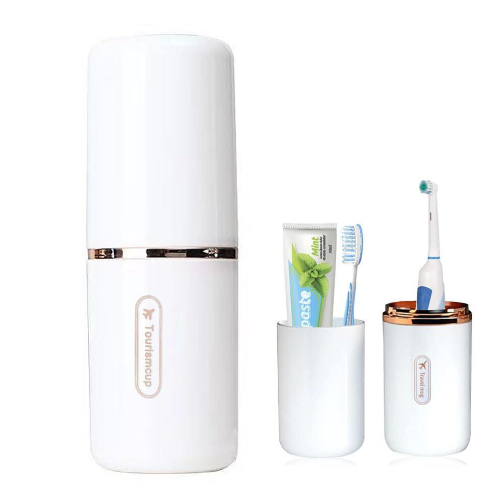 旅行用の特別な歯ブラシホルダー、この旅行用歯ブラシケース、2セクションデザイン、歯ブラシを清潔に保ちます。丸い角のデザインで、傷のある肌やバッグの中のアイテムはありません。アタッチメントリングで接続されており、2つのカップとして分離できます。