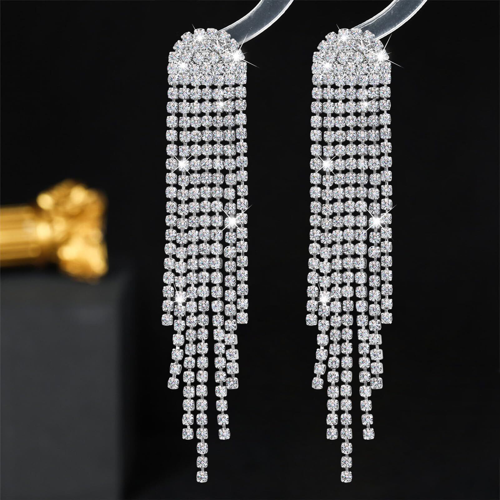 【軽量で快適】長さ: 2.64インチ、幅: 0.47インチ。 このキラキラとしたタッセルイヤリングは軽量なので、耳に負担をかけることなく、一日中快適に着用できます。 カジュアルでもドレッシーでも、このスタイリッシュで豪華なミニマリストの女性用タッセル イヤリングは、あなたのステートメント ジュエリーになります。