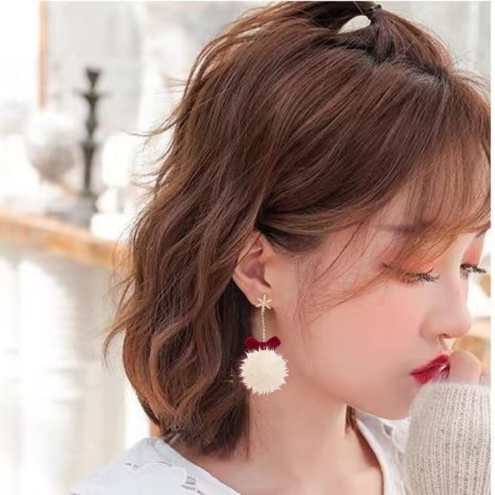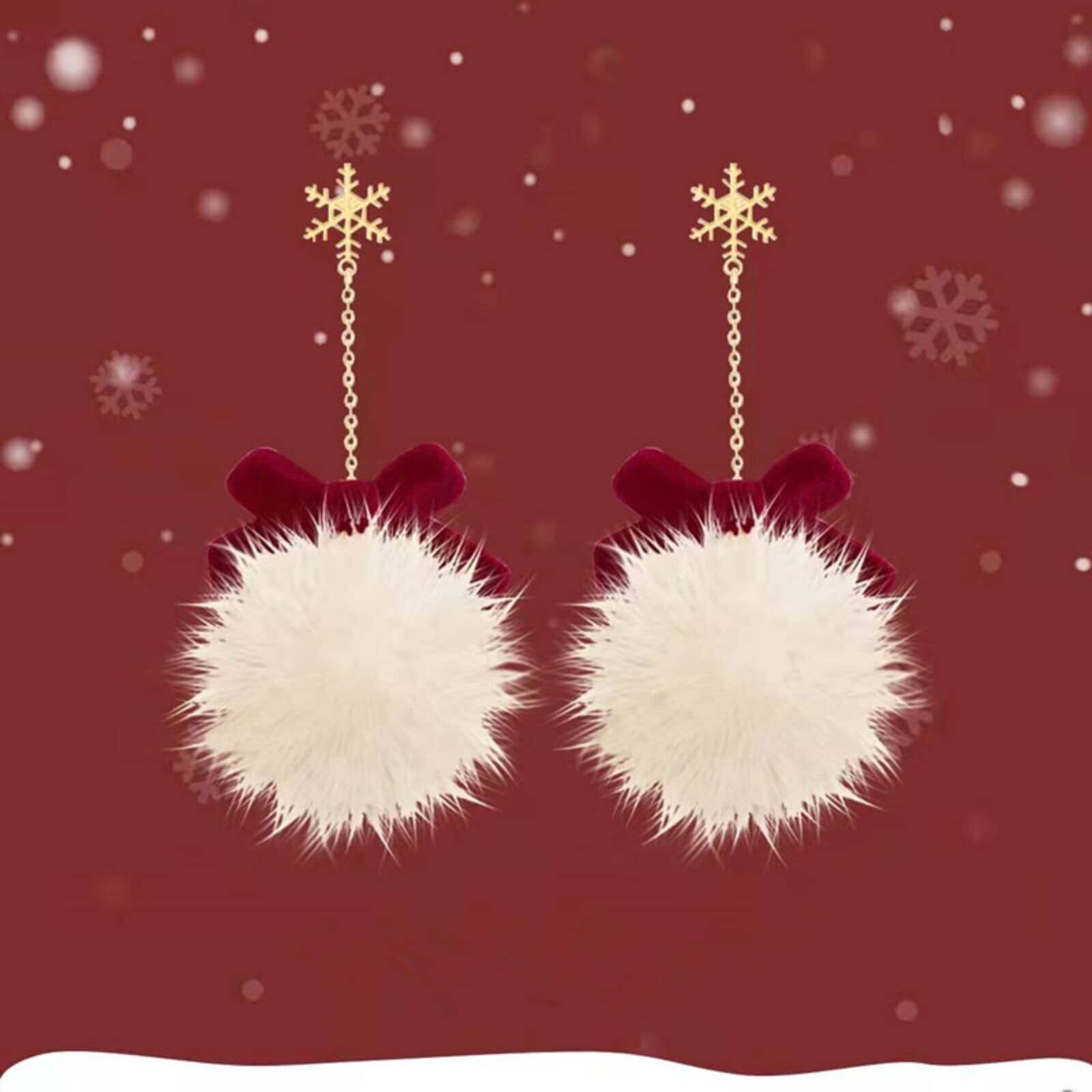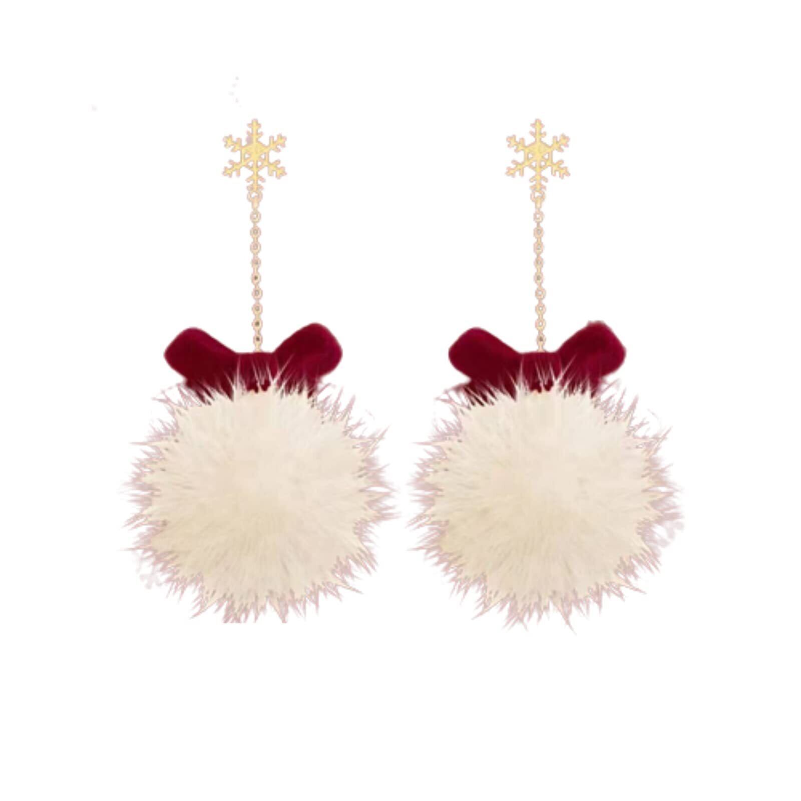 ❄️クリスマス、結婚式、パーティー、宴会など、ほとんどの機会に適しています。ガールフレンド、妻、友人へのギフトとして贈ることができます。ホワイト ポンポン イヤリングは、スノーフレークとホワイト ポン ボールのデザインを使用しており、秋冬のマッチングに適しており、服装に彩りを加えます。