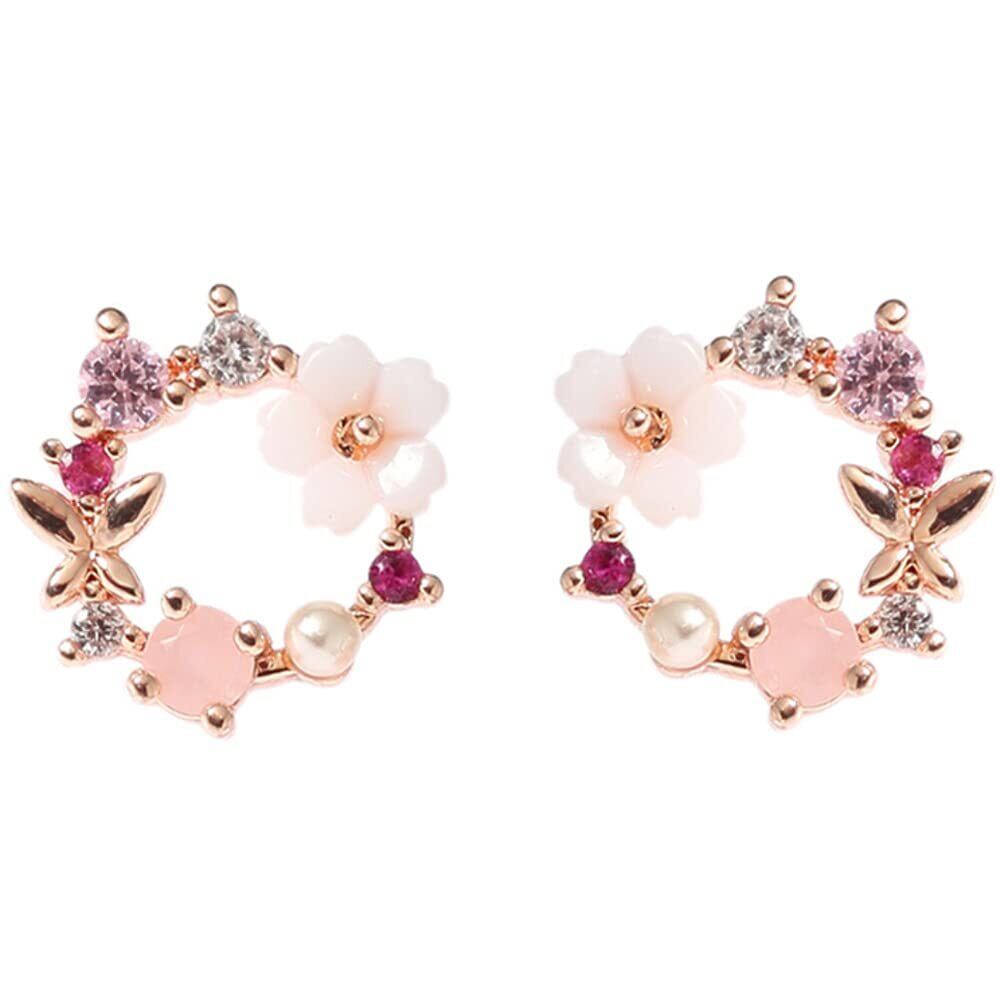 [AXLUCE] イヤリング レディース 花 桜 さくら フェイクピアス ピアス風 ノンホールピアス
