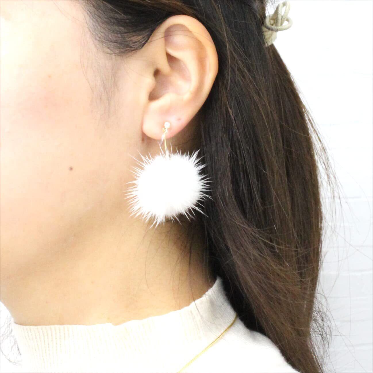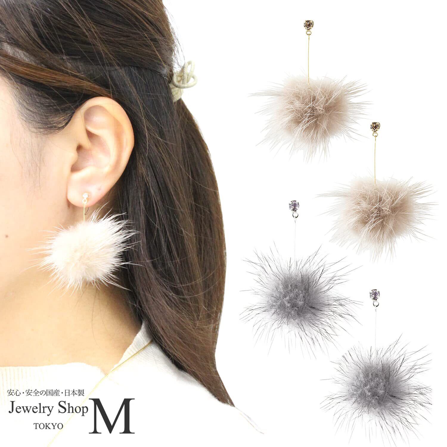 [miwaki] ミンク ファー ピアス ストーン 細線 チタンピアス レディース 金属アレルギー対応 日本製 ゴールド p0282