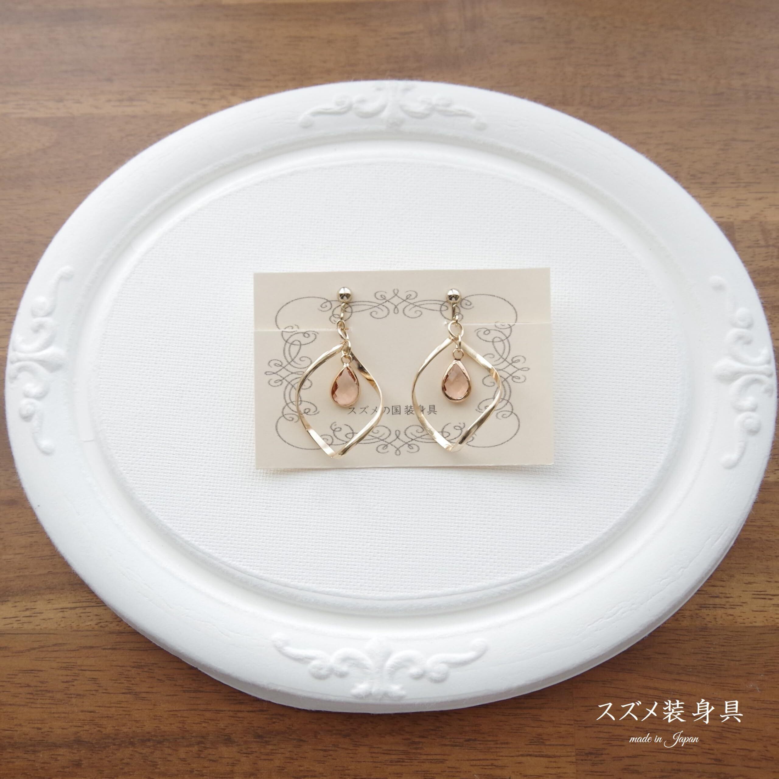 柔らかく女性らしい雰囲気を醸し出してくれるゴールドカラーのフープ。 ひねりの効いたフープの中で、上品なグリーンガラスが優しく揺れます。 とっても華やかで目を惹くアクセサリーです。 まあるい形をしているひねりチャーム。 実は右と左で3㎜ほど長さが違う工夫が施されています。 その為、右と左を入れ替えるとチャームが横向きになり、8の字のインフィニティマークのようにもなります。 2つの表情を楽しむことができます。 爽やかぐりーんの上品なワンポイントとして是非どうぞ。