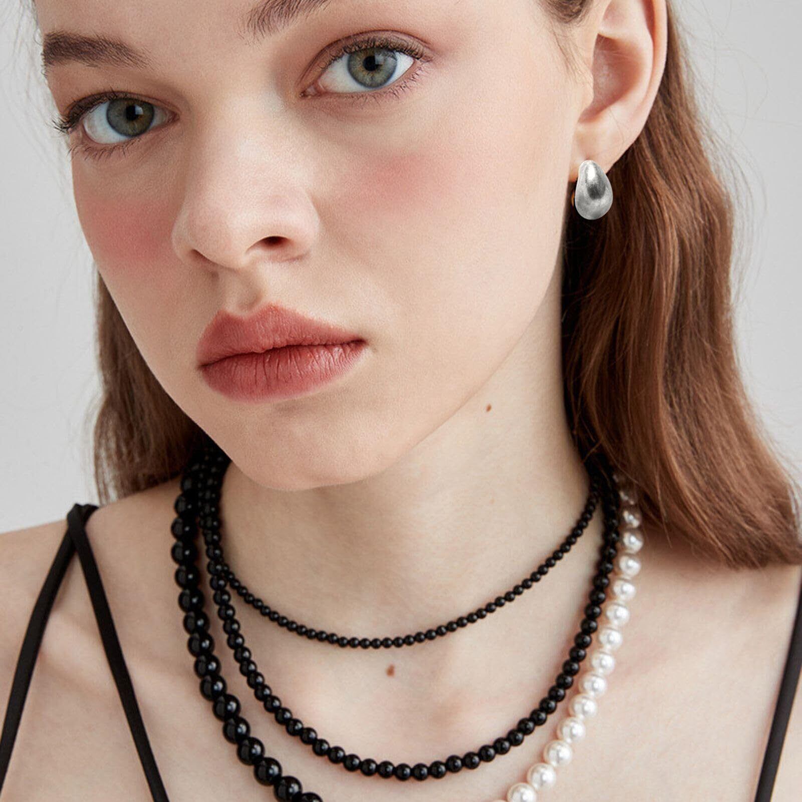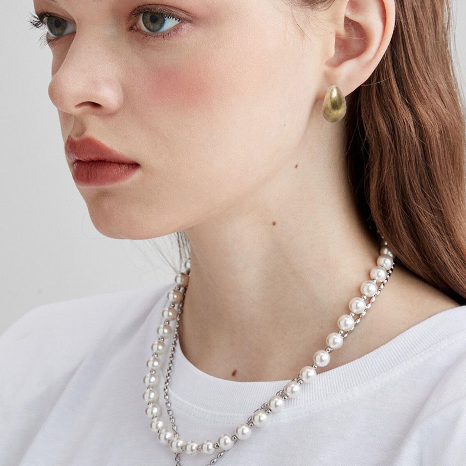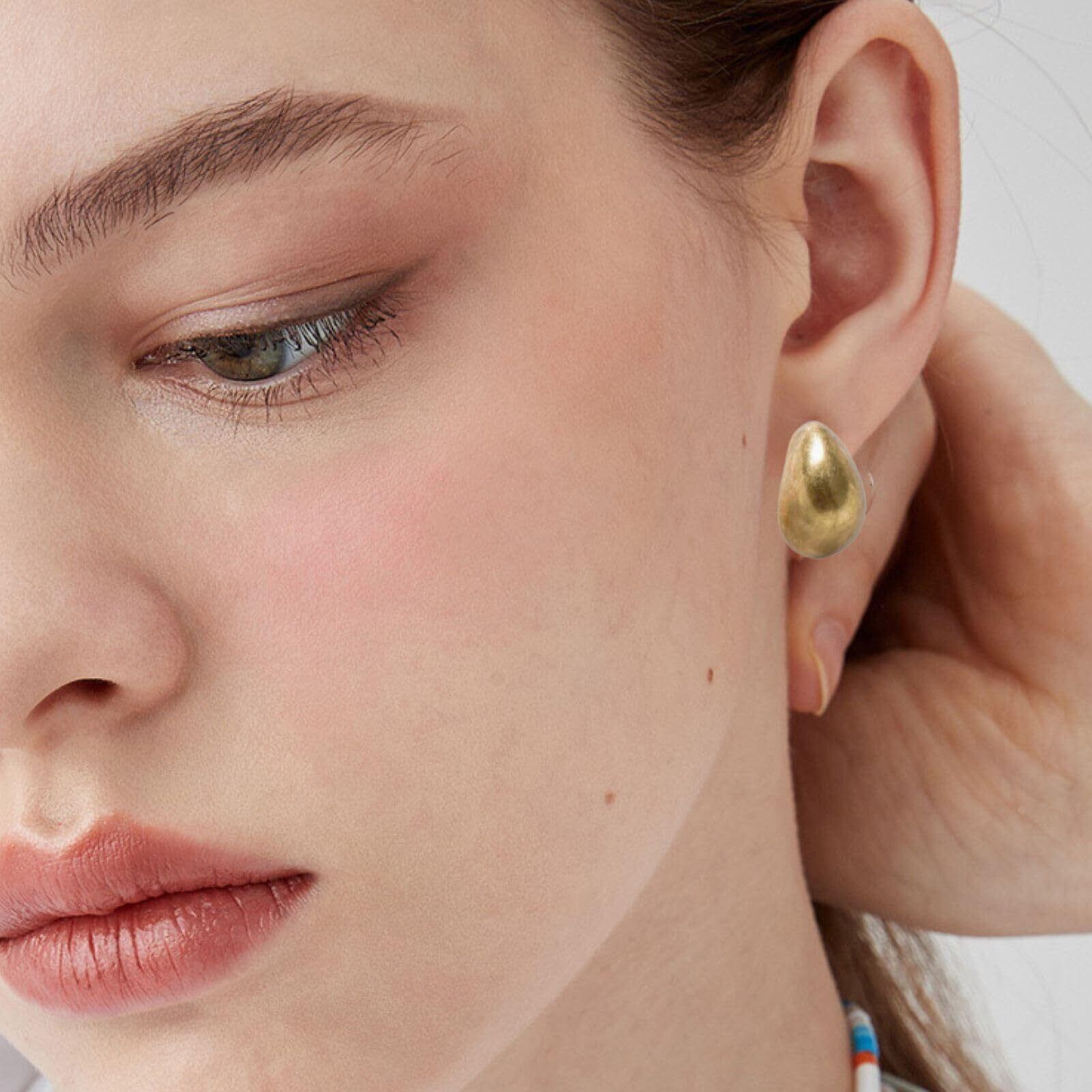 ぷっくりとしたフォルムが魅力のドロップ型メタルイヤリング。