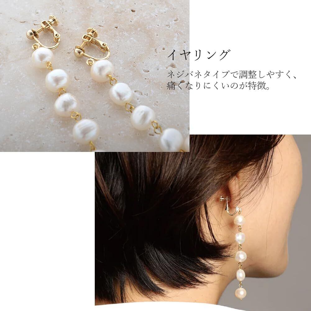 【ピアスとイヤリングからお選びいただけます】 イヤリングはネジバネタイプで調整しやすく、痛くなりにくいのが特長。パールの自然な重さや揺れにもホールド力が高い金具なので、安心です。