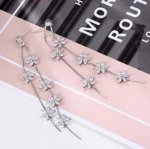 ピアス イヤリング 桜 フラワー かわいい ロングビジューピアス プレゼント ジュエリー (シルバーイヤリング両耳)