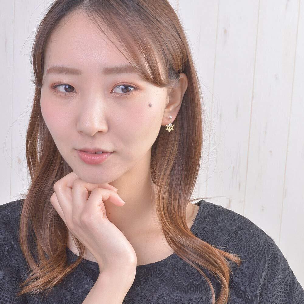 [パリスキッズ] イヤリング ノンホール 雪の結晶 スノークリスタル プレート ラインストーン キラキラ ゴールド シルバー ピンクゴールド ピアスに見える