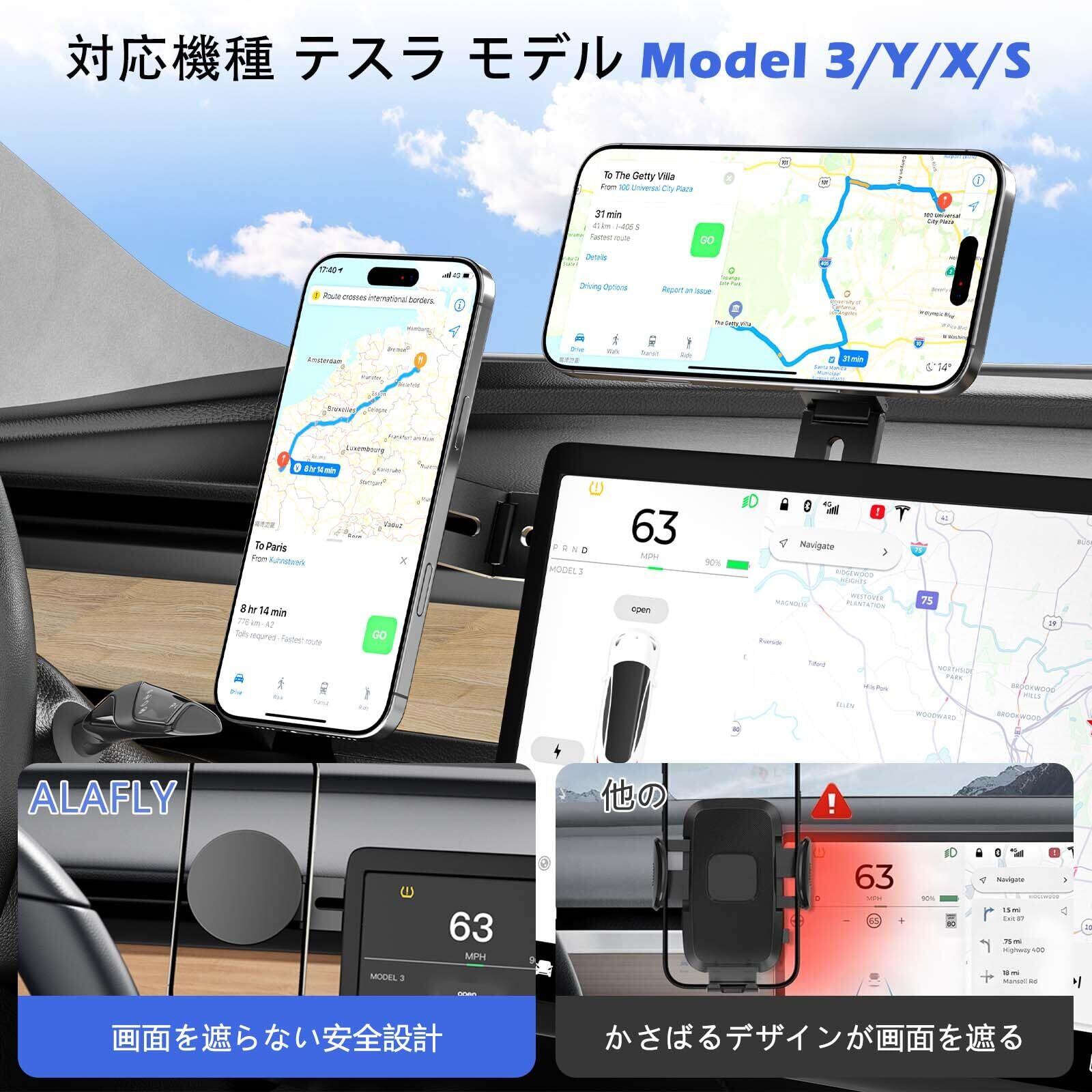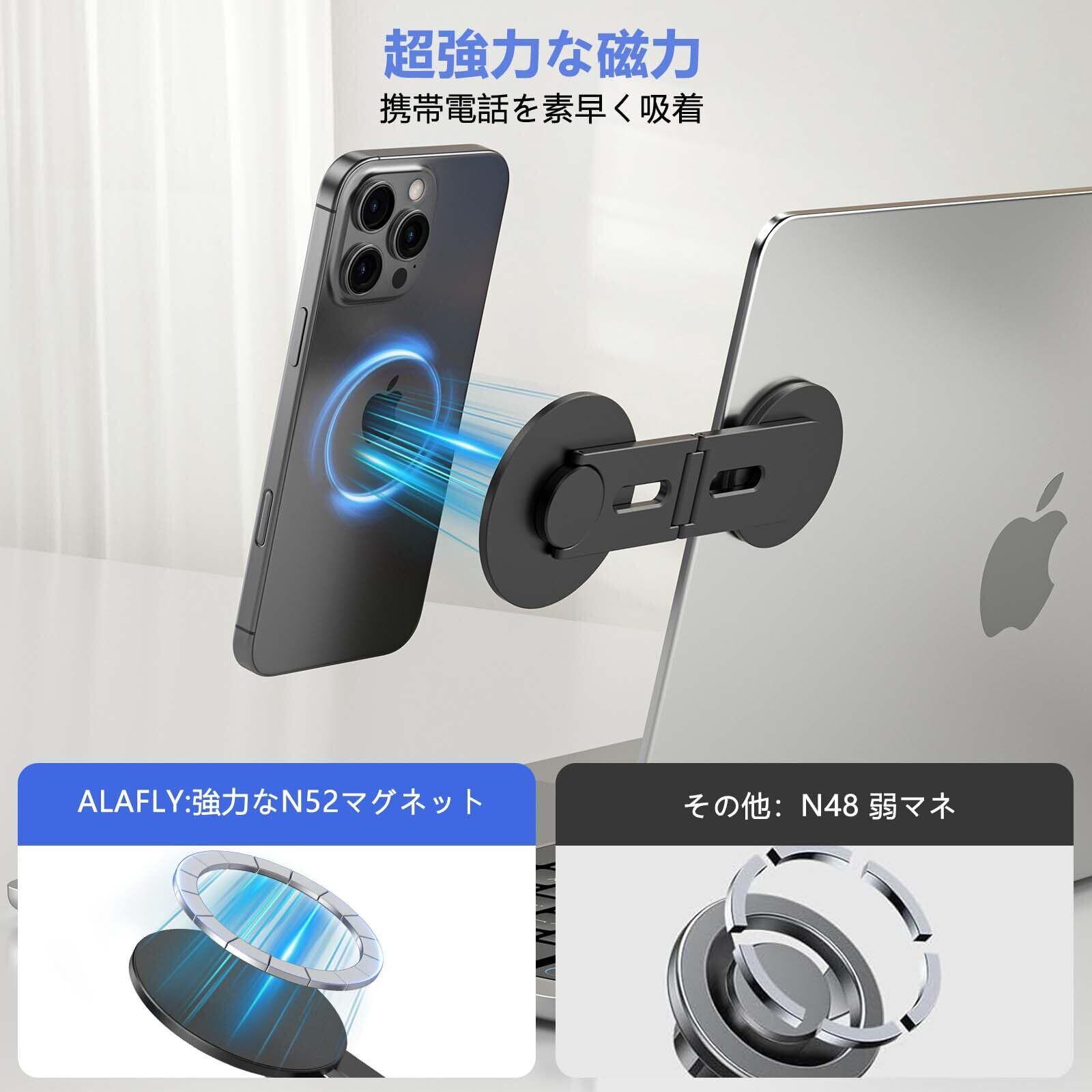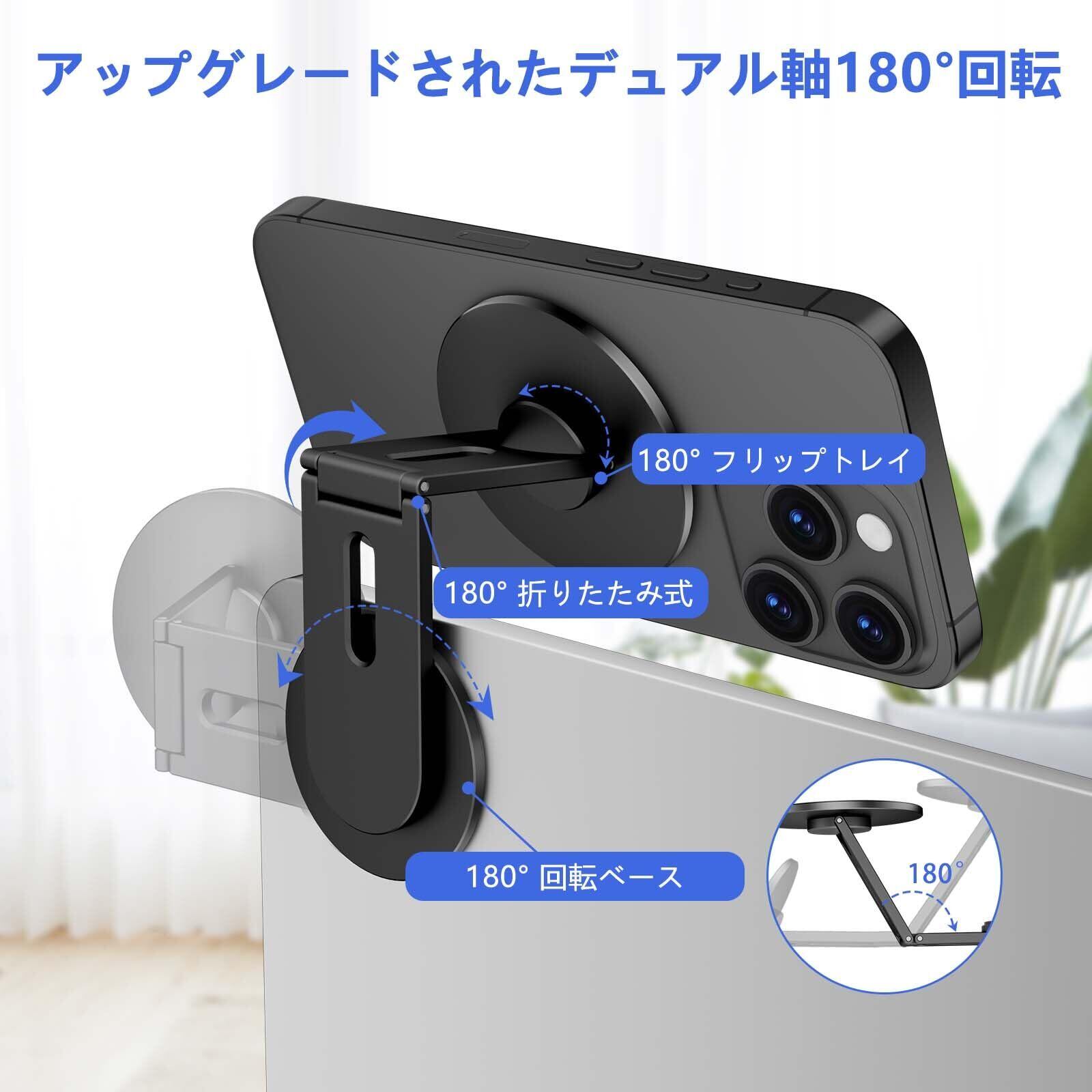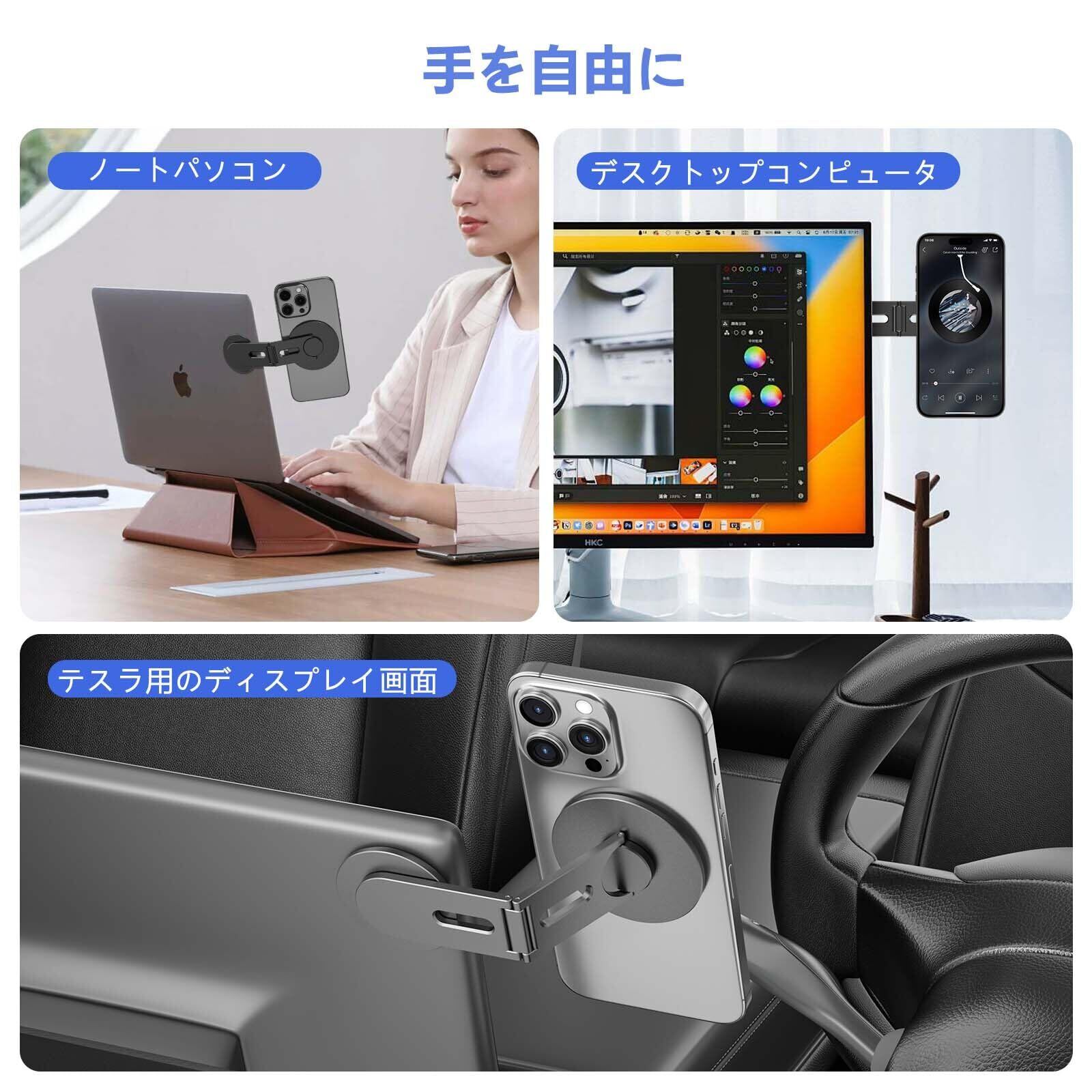 スマホスタンド magsafe コンピューターモニター用携帯電話ホルダー 固定 magsafe 用 クランプ iPhone 17/16/15/14/13/12 折りたたみ式 省スペース 超薄型で持ち運び 強力な磁力 Tesla Model 3/X/Y/S (ブラック)