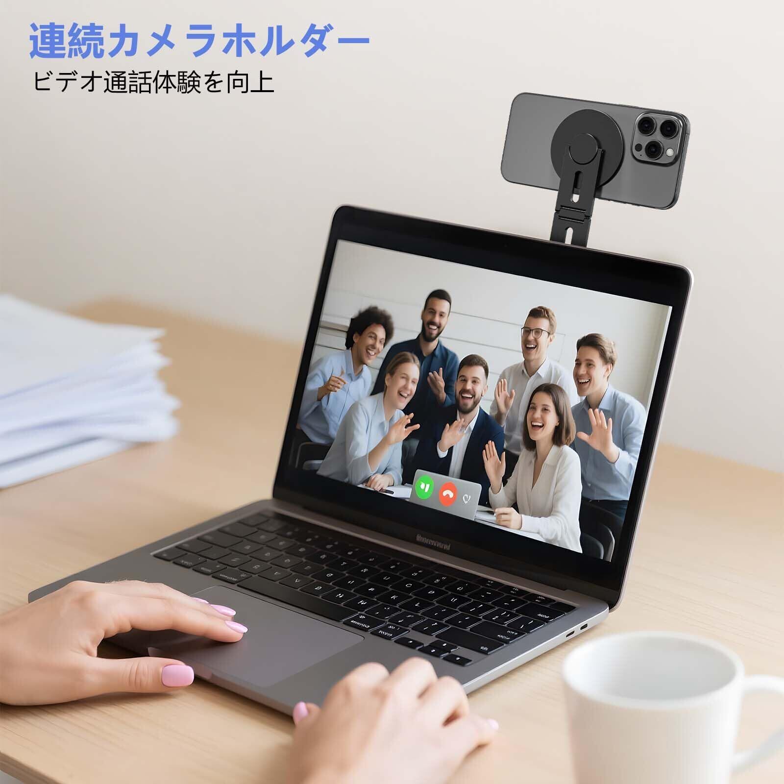 【連係カメラ対応】Mac用のFaceTimeやビデオ通話の画質を向上させる連係カメラスタンドとしても最適。マグネットで理想の角度に固定でき、ハンズフリーでの配信・録画・通話に最適です。出張や在宅勤務、外出先での会議にも活躍します。