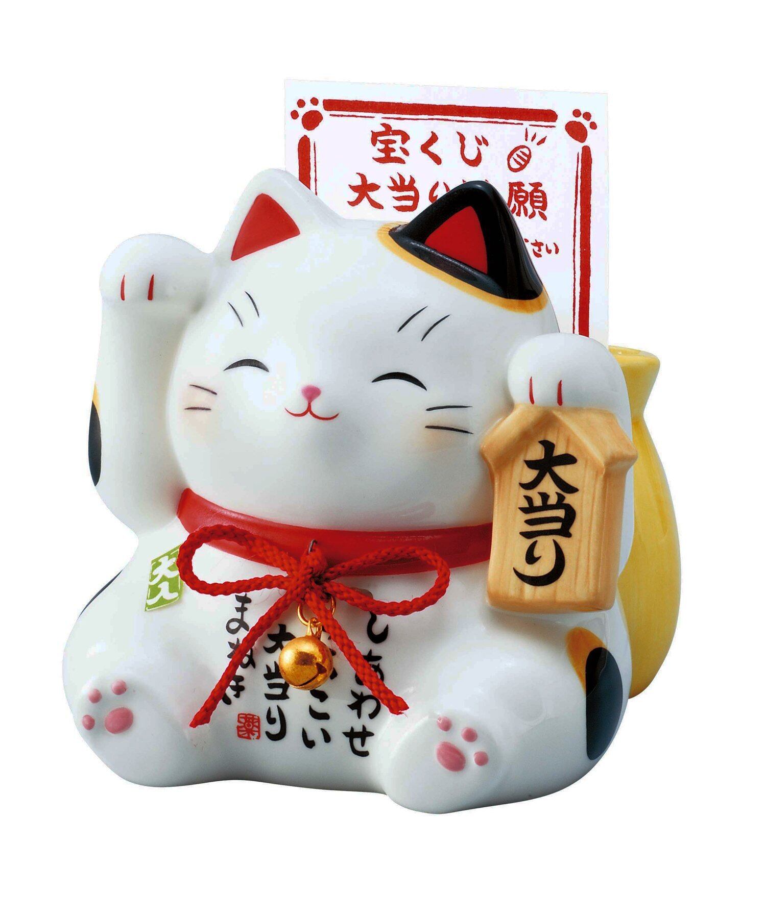 薬師窯 彩絵 大当り 招き猫(白)(宝くじ入れ貯金箱)