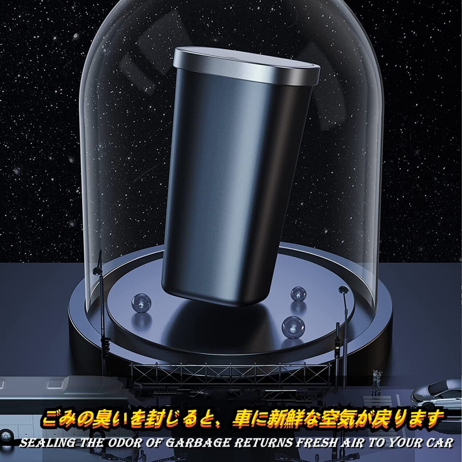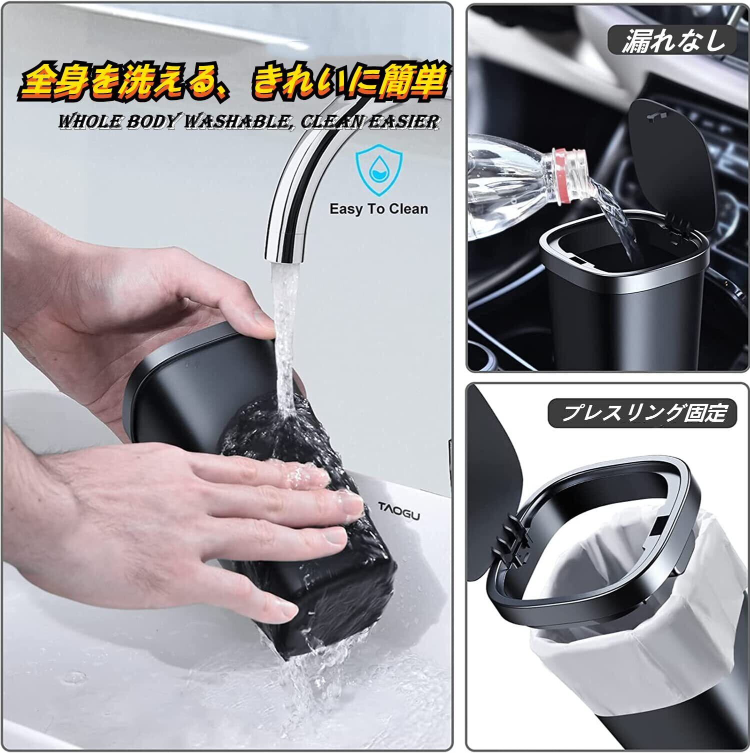 【ポップアップ蓋】黒いカップホルダーのゴミ箱用ふたを軽く押すと自動的に開きます。使用後は、ゴミ箱用ふたを押して閉めます。これにより、ゴミを隠し、携帯用小型車のゴミホルダーから不快な臭いが逃げるのを効果的に防ぐことができます。