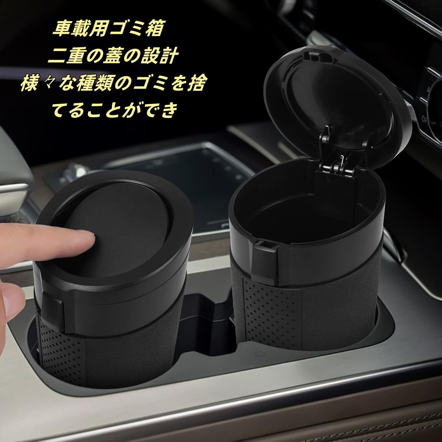 車用ミニゴミ箱2個セットカバー付き防漏防水防臭ポータブルカップホルダー車内用アイテム