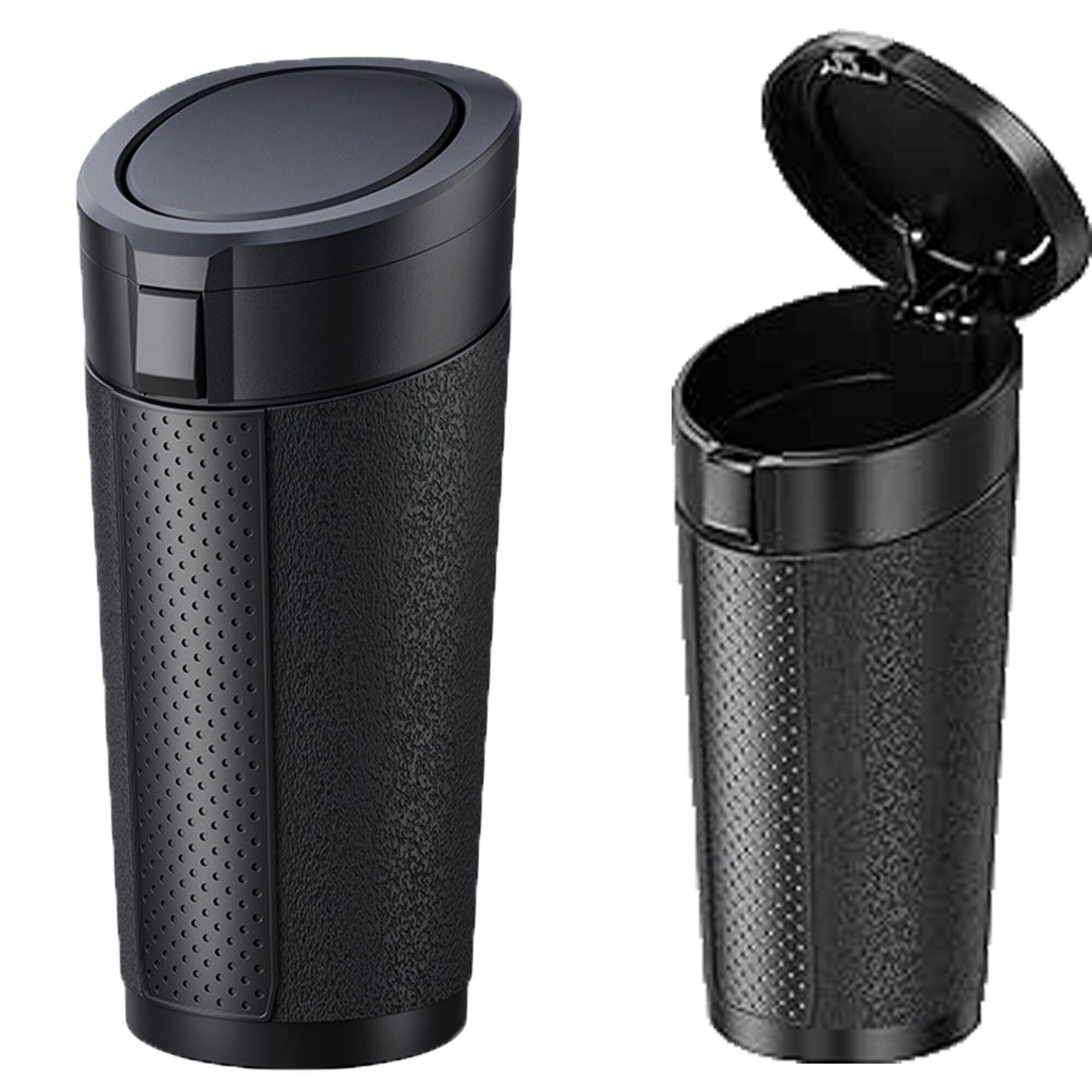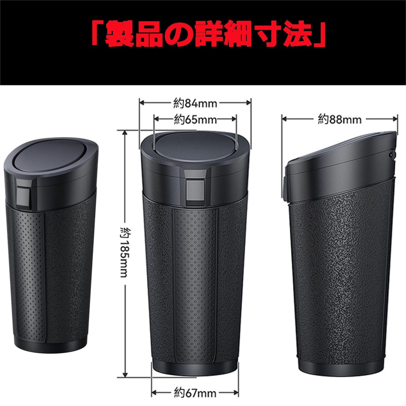 【抜群の安定性&転倒防止構造】 「カーブや急ブレーキで倒れた…」という経験に対応。自重178gの安定感+88mmスリムボディ設計により、車内のカップホルダーや隙間にしっかりフィット。波紋滑り止め底&360°回転ロックで振動にもズレにくく、ゴミの飛び散りゼロを実現します。