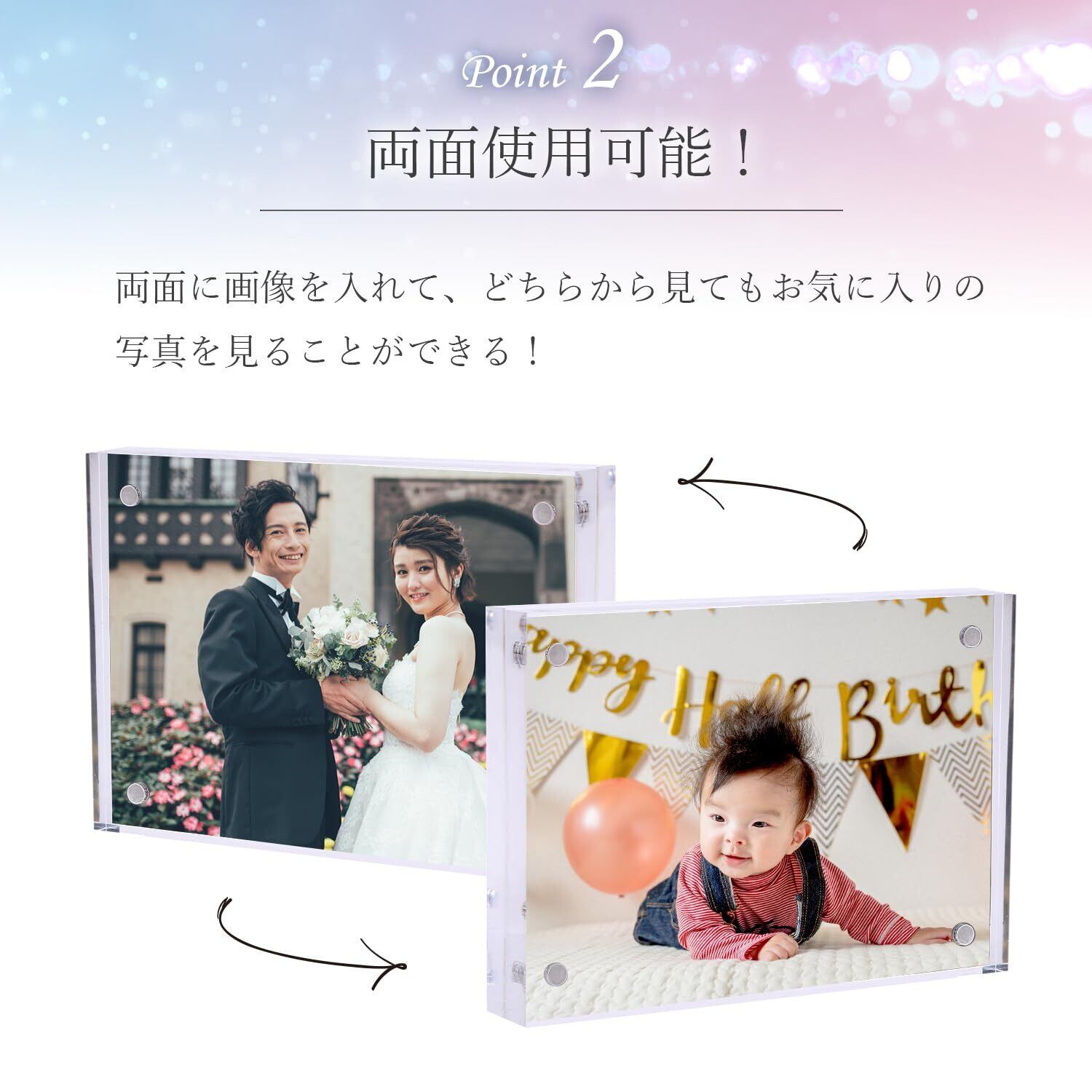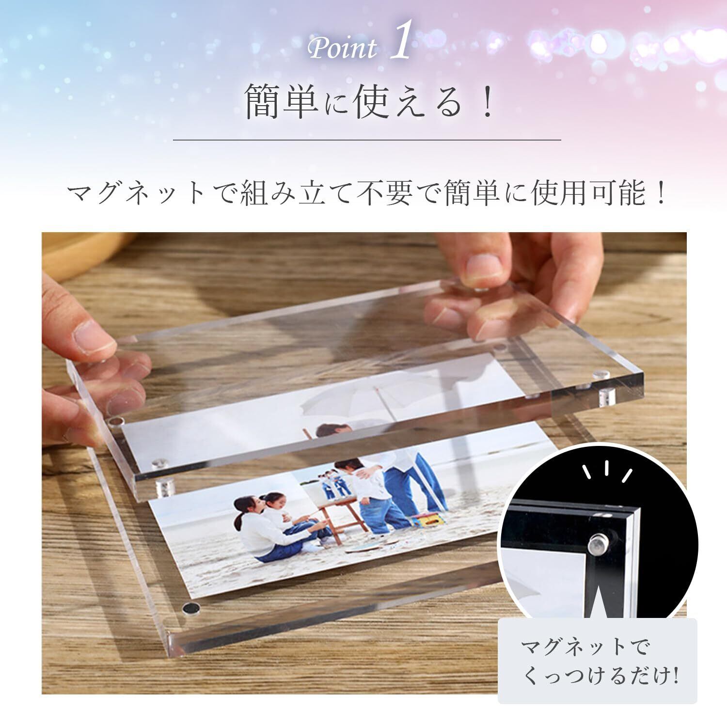 【多様な使用用途】家族写真や記念写真はもちろん、ネットプリントしたイラストやカレンダー、カードなどお気に入りの1枚をきれいに飾ることができます。また、両面透明で縦・横置き兼用なので、様々なコーディネートが可能です。