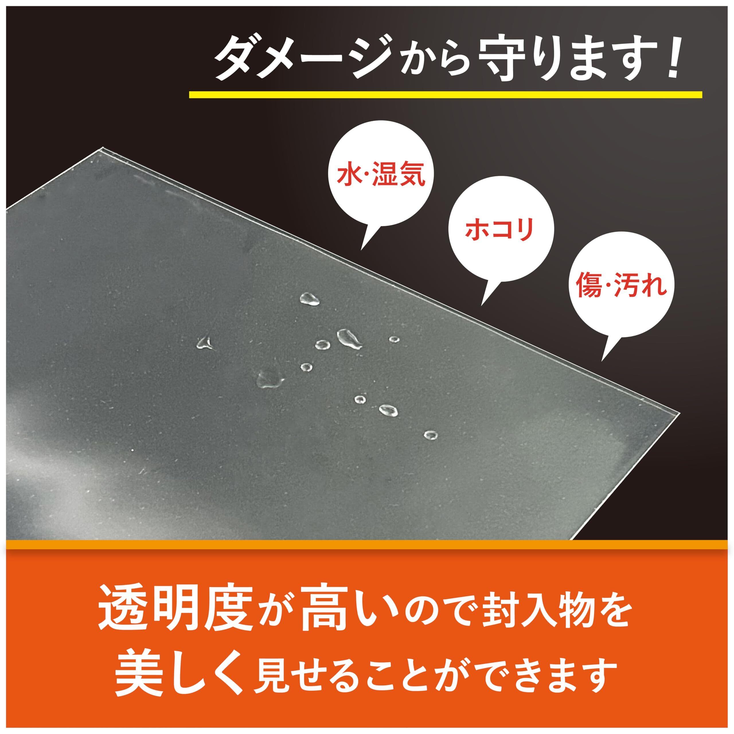 L判生写真、ブロマイドにぴったりなサイズの透明OPPスリーブです。封入口が揃って見た目がきれいなタイプです。スリーブに入れたままアルバム、ファイル、フォトホルダーに収納できます。