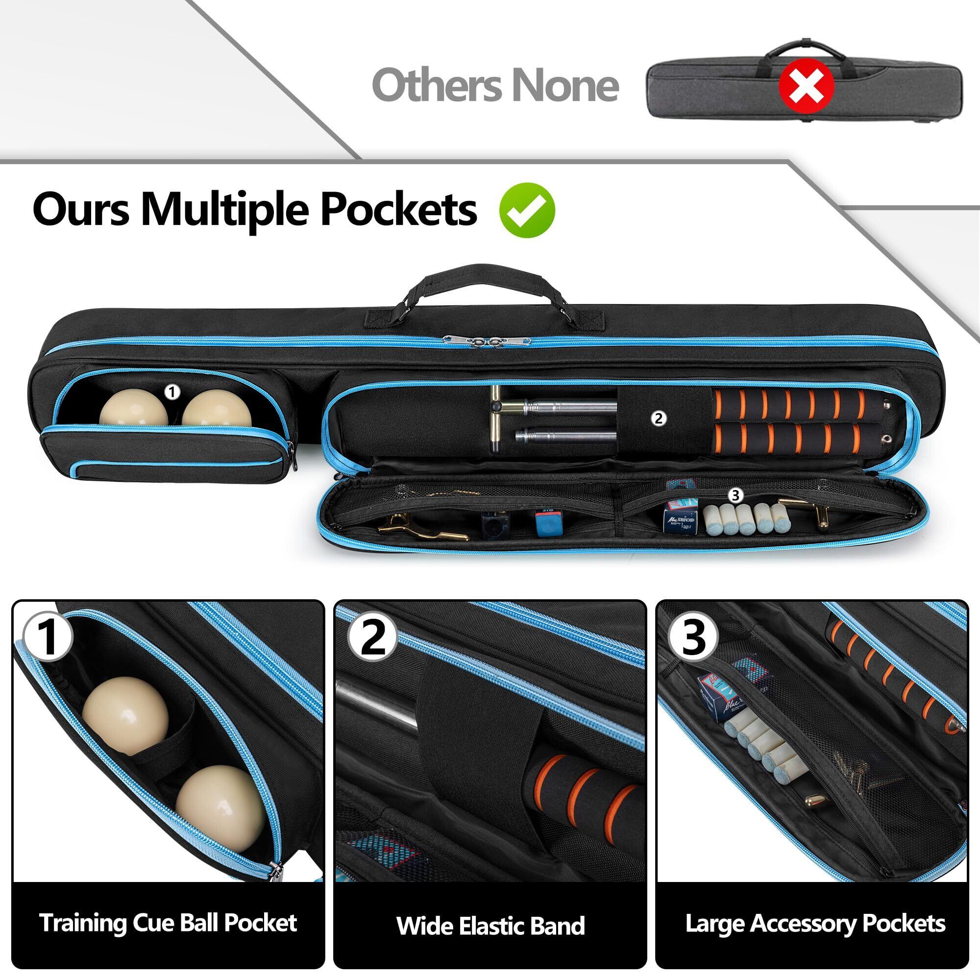 キューケース バット2本とシャフト2本収納可 ビリヤードキューケース プールキューバッグ 1/2ビリヤードキューバッグ