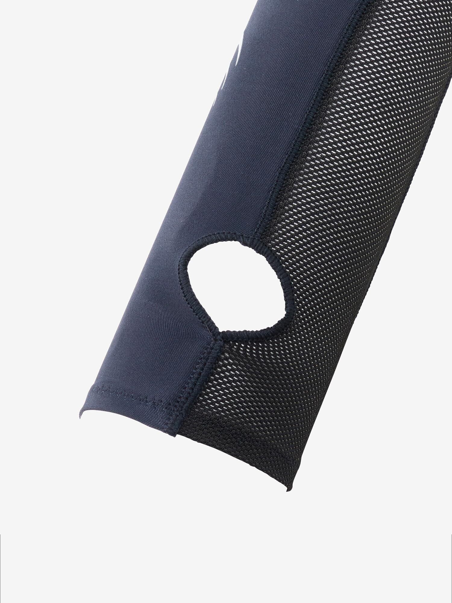 メッシュ素材との切り替えで通気性を高めた、着圧設計のアームカバー