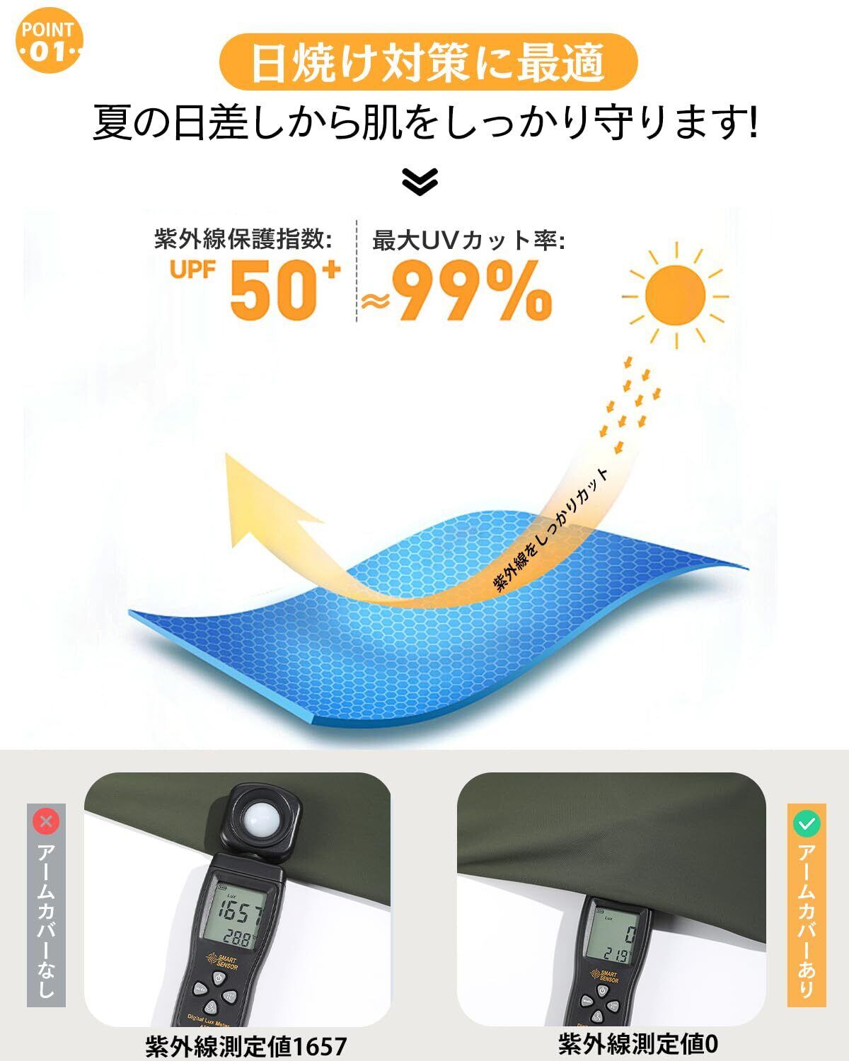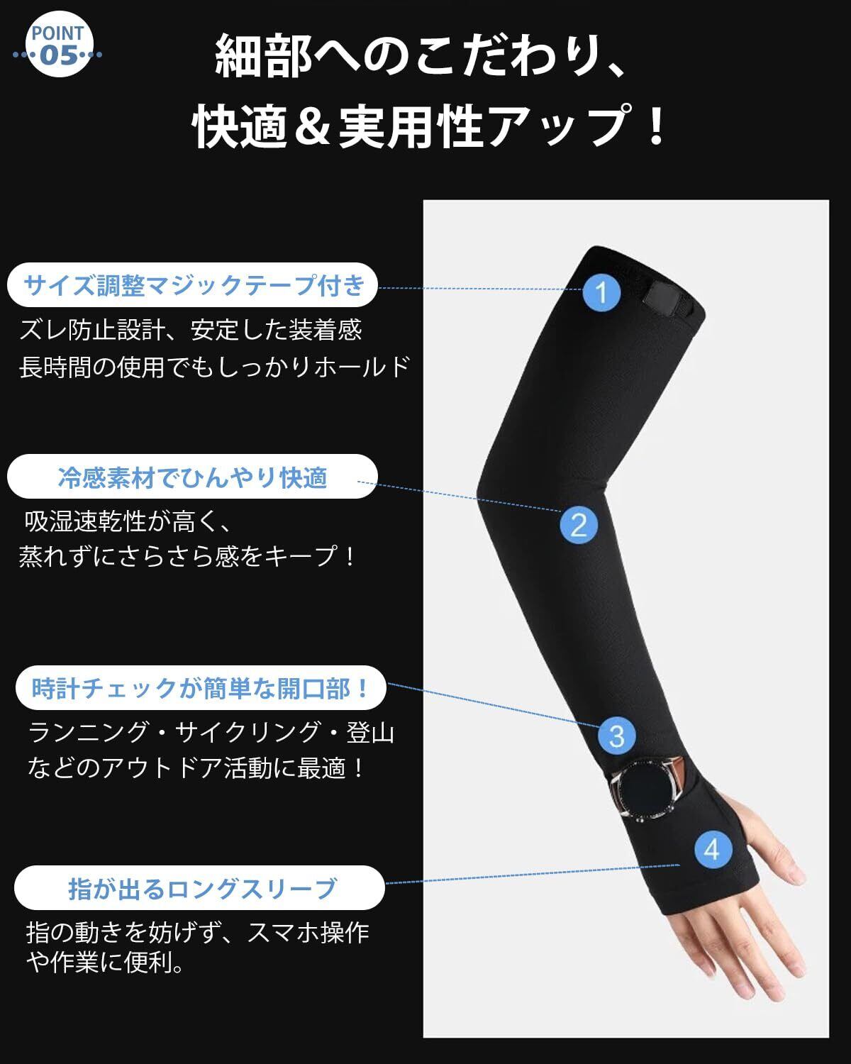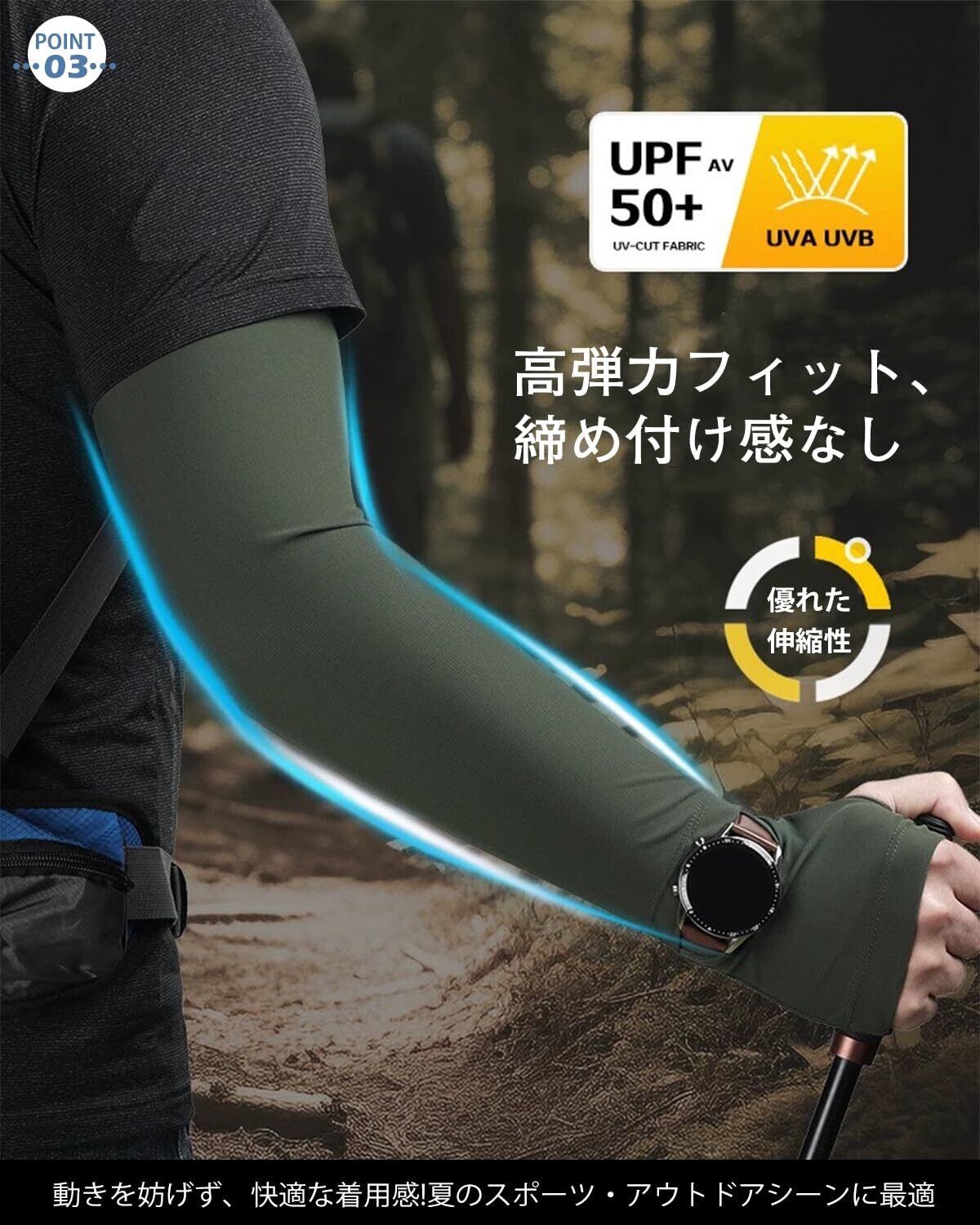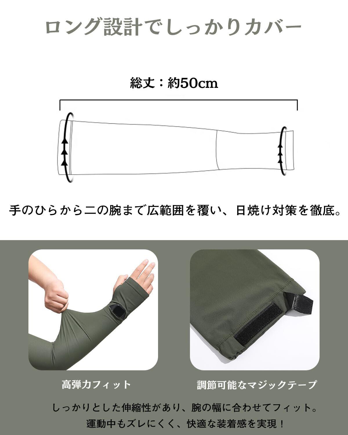 [UBesuto] アームカバー メンズ 【手元開口・ズレ防止設計】ひんやり 冷感 uvカット UPF50+ 腕カバー 夏 ロング丈 腕幅調整できる 吸汗速乾 日焼け対策 紫外線対策 自転車 ランニング マラソン 運転 お釣り アウトドア スポーツ 日焼け防止