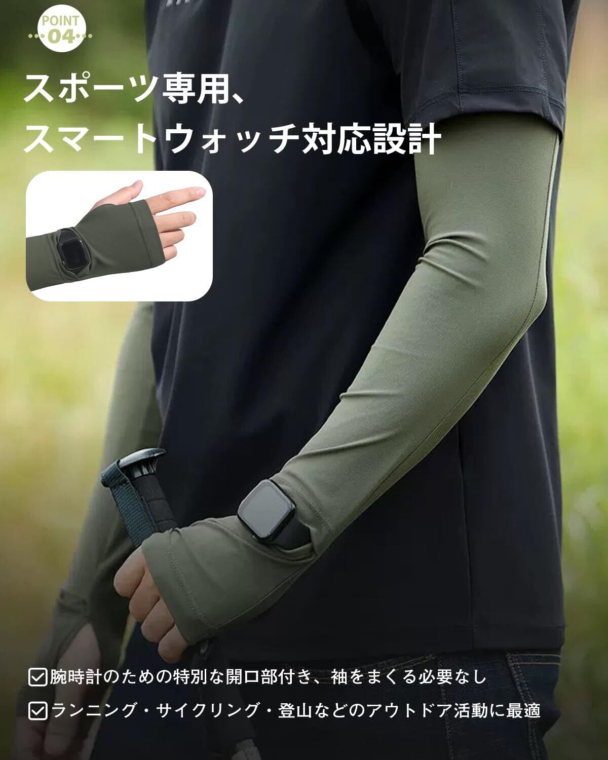 ⌚【スマートウォッチも見やすい!手元開口デザイン】 UBesutoのアームカバーは手首部分に開口設計を採用。スマートウォッチや腕時計を装着したままでも、時間の確認がラクラク!屋外での運動中や作業中にも便利なデザインです。