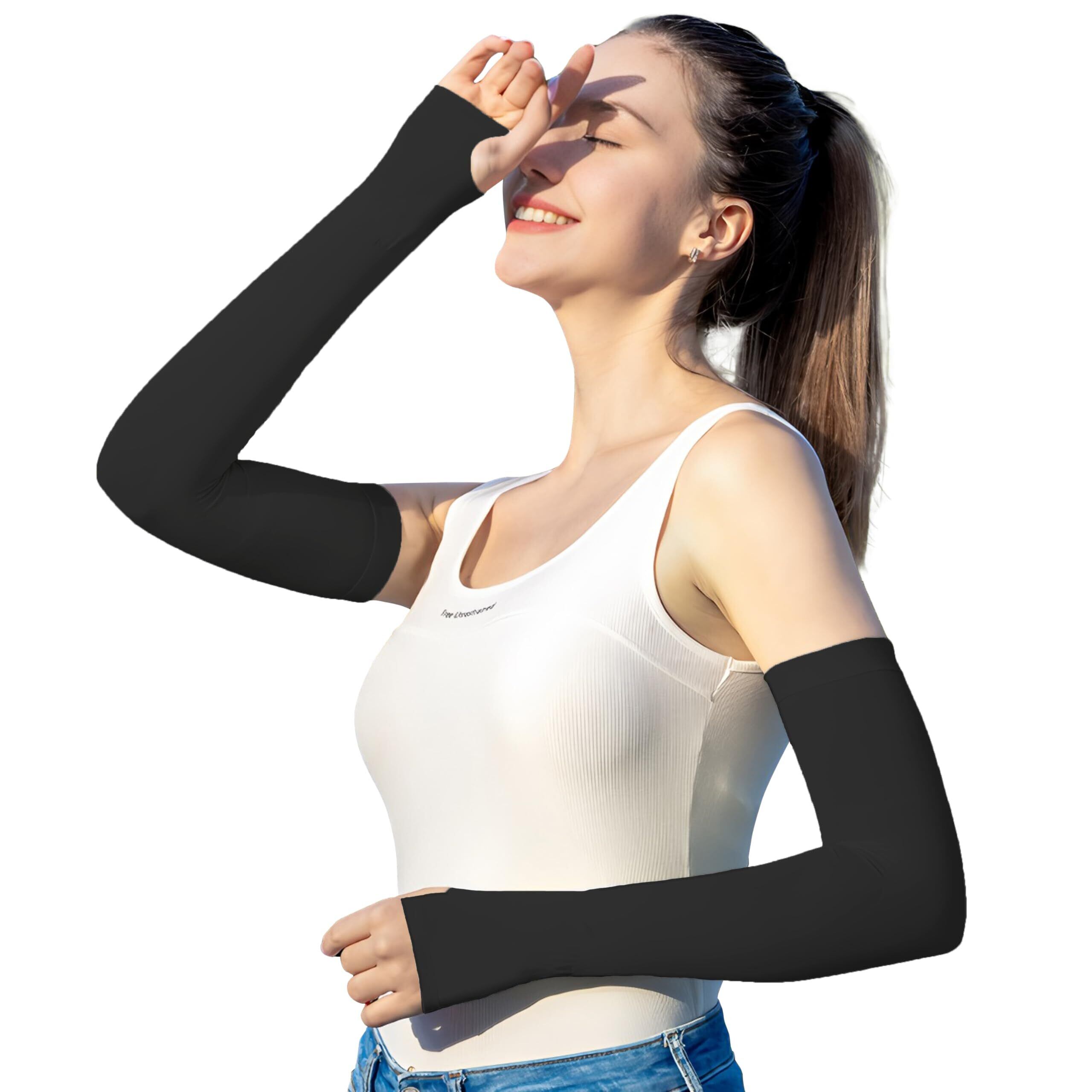3.【伸縮性 フィット感】優れた伸縮性とフィット感で、男女兼用で着用可能。指穴付きでズレにくく、ランニングやバレーボールにも最適です。伸縮性は、特殊な編み込み技術により達成されており、激しい動作を繰り返してもすぐに元の形状に戻ります。フィット感は、身体の曲線に沿って設計されており、肘や腕の関節部分もしっかりと覆い、自由な動きを妨げません