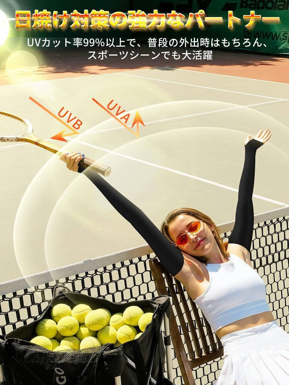 [moniko] アームカバー 腕カバー 【接触冷感 2枚1セット】夏用 uvカット 吸汗速乾 滑り止め メンズ レディース 男女兼用 伸縮性 通気性 UPF50+ 紫外線対策 フィット感 指穴付き アームスリーブ 運転 自転車 アウトドア スポーツ