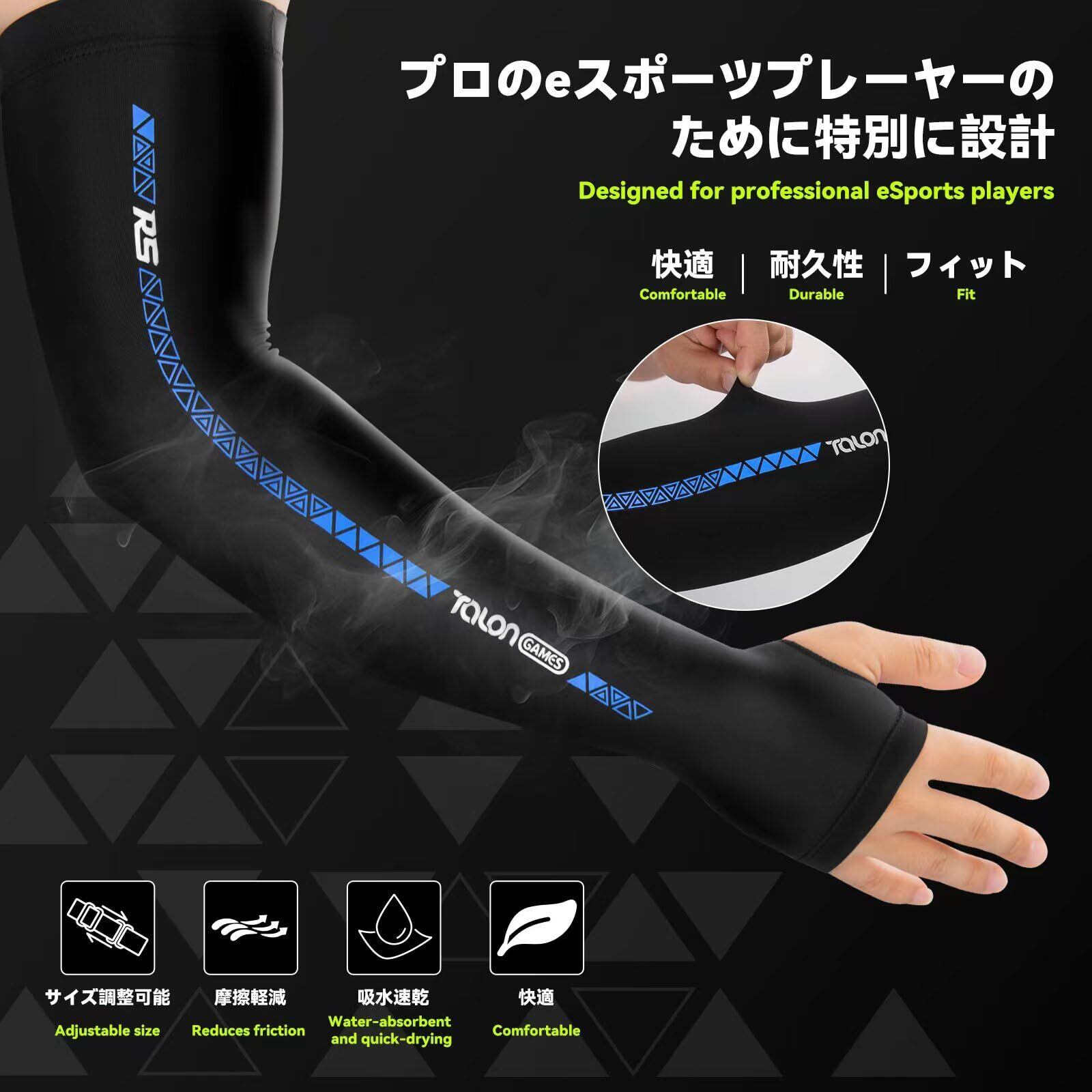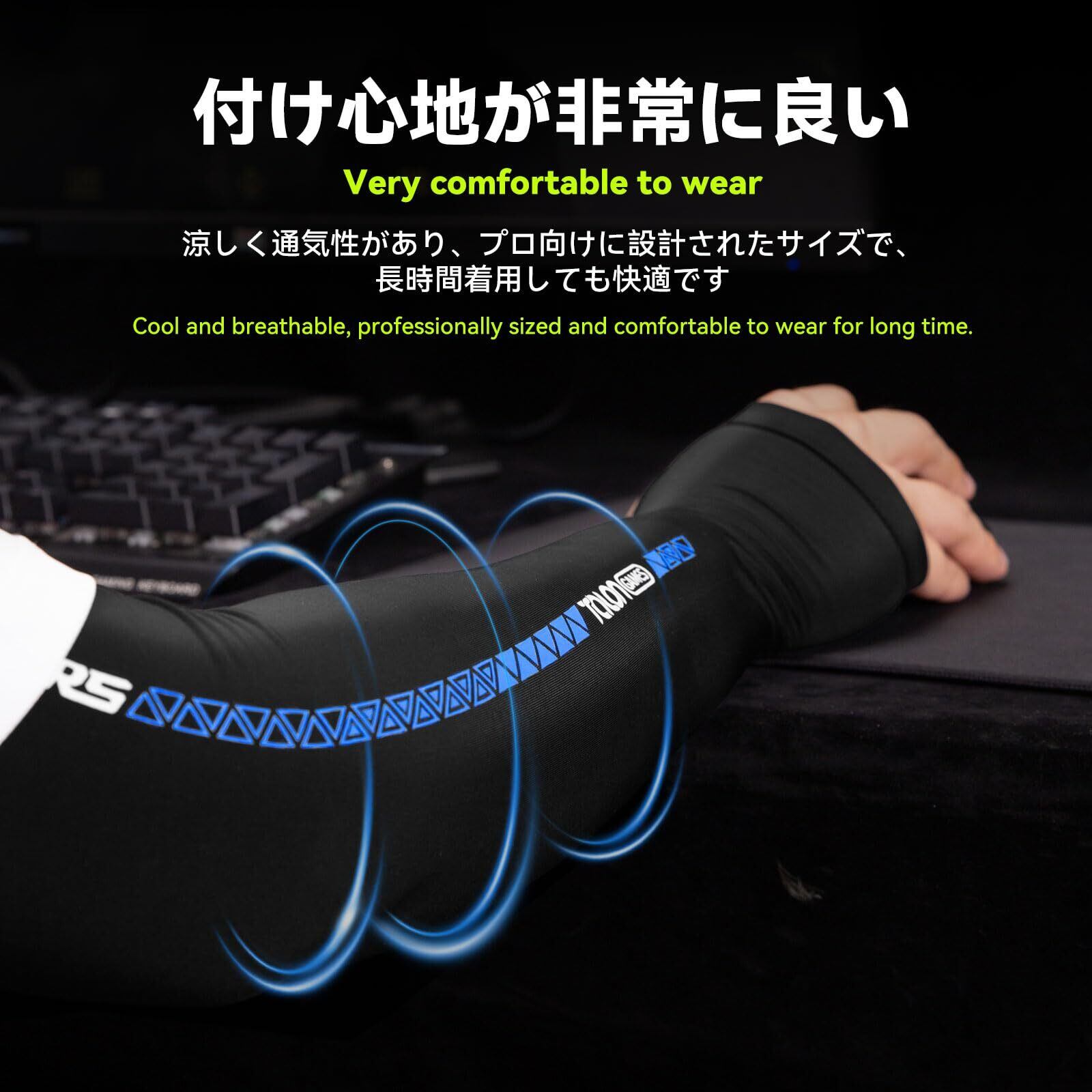 [TALONGAMES] ゲーミングアームカバー 保護アームスリーブ eスポーツ専用 摩擦軽減 fps tps ロング 吸水速乾 冷感 1枚入