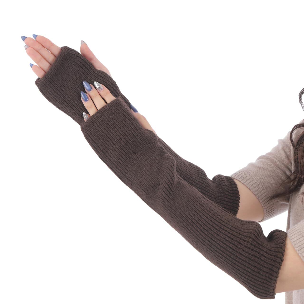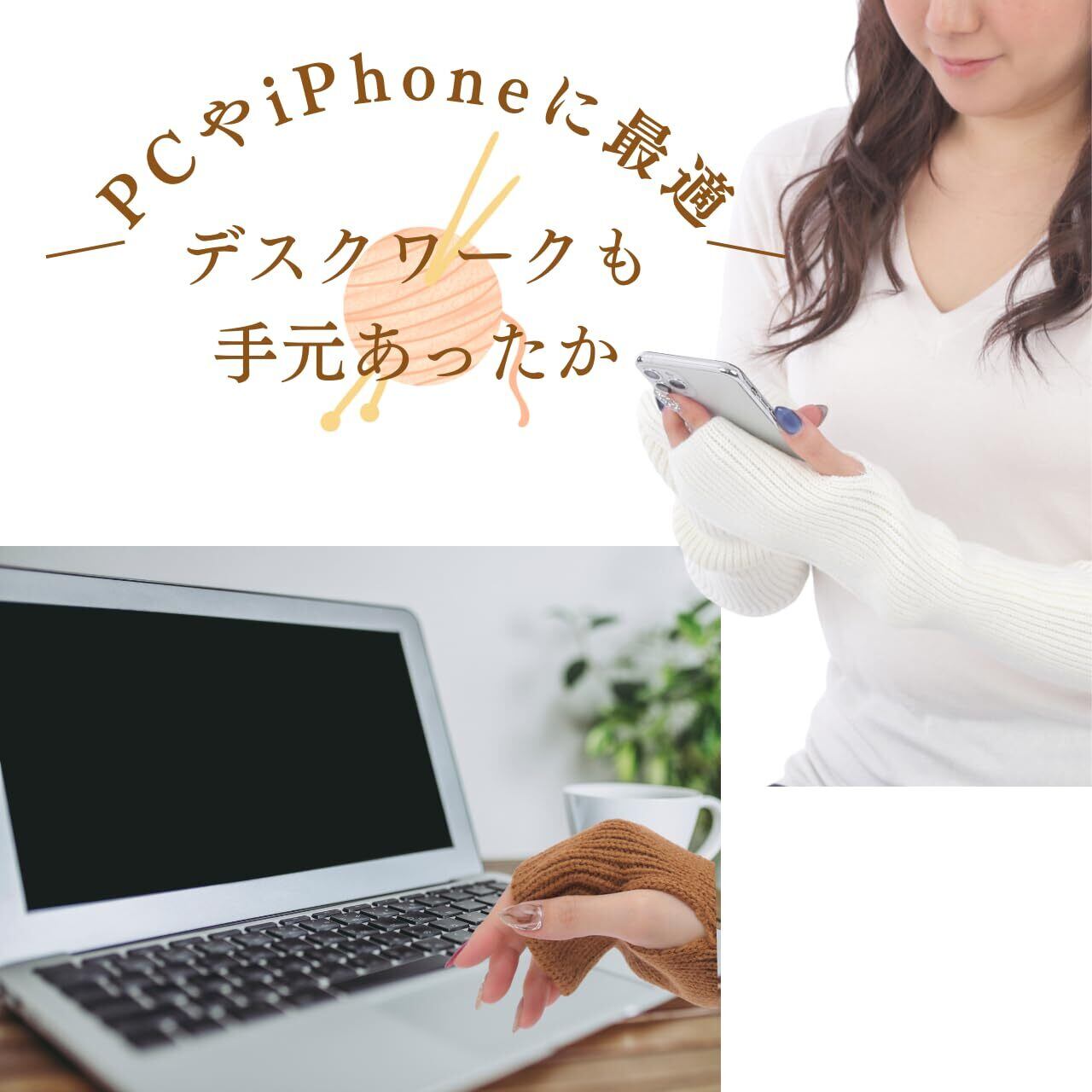 親指ホールが付いたデザインで、指先の自由度を確保しつつ、手首から肘までをしっかりとカバーします。スマホやタブレットを操作する際に便利で、寒い季節でも手袋を外す必要がありません。