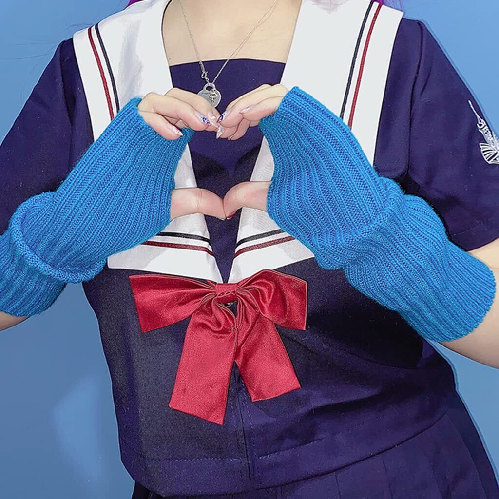 shunxinerstyニットスリーブニットアームスリーブサムホールグローブウィンターアームウォーマーロングハーフフィンガーミトンストレッチ無地アームカバーホットピンク