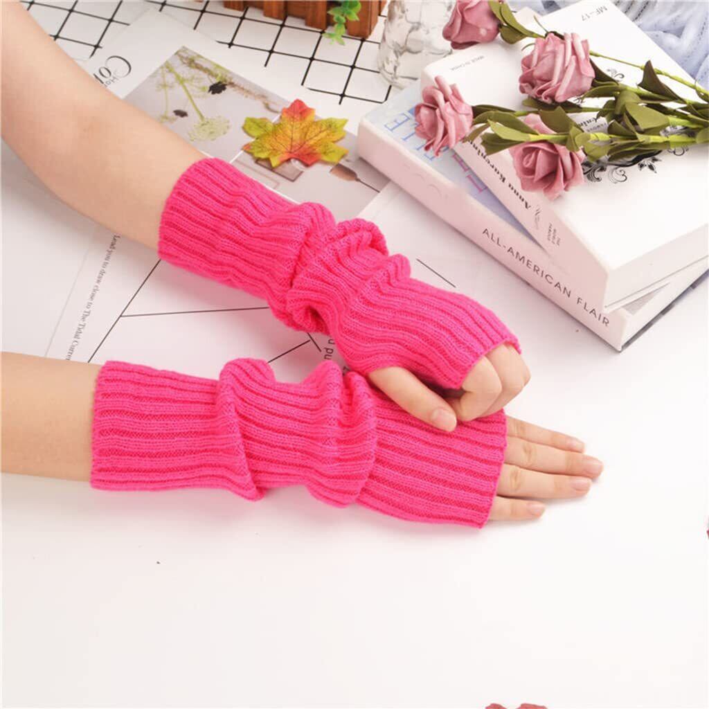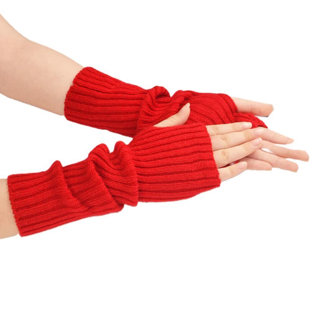 [shunxinersty] ニットスリーブニットアームスリーブサムホールグローブウィンターアームウォーマーロングハーフフィンガーミトンストレッチ無地アームカバーレッド