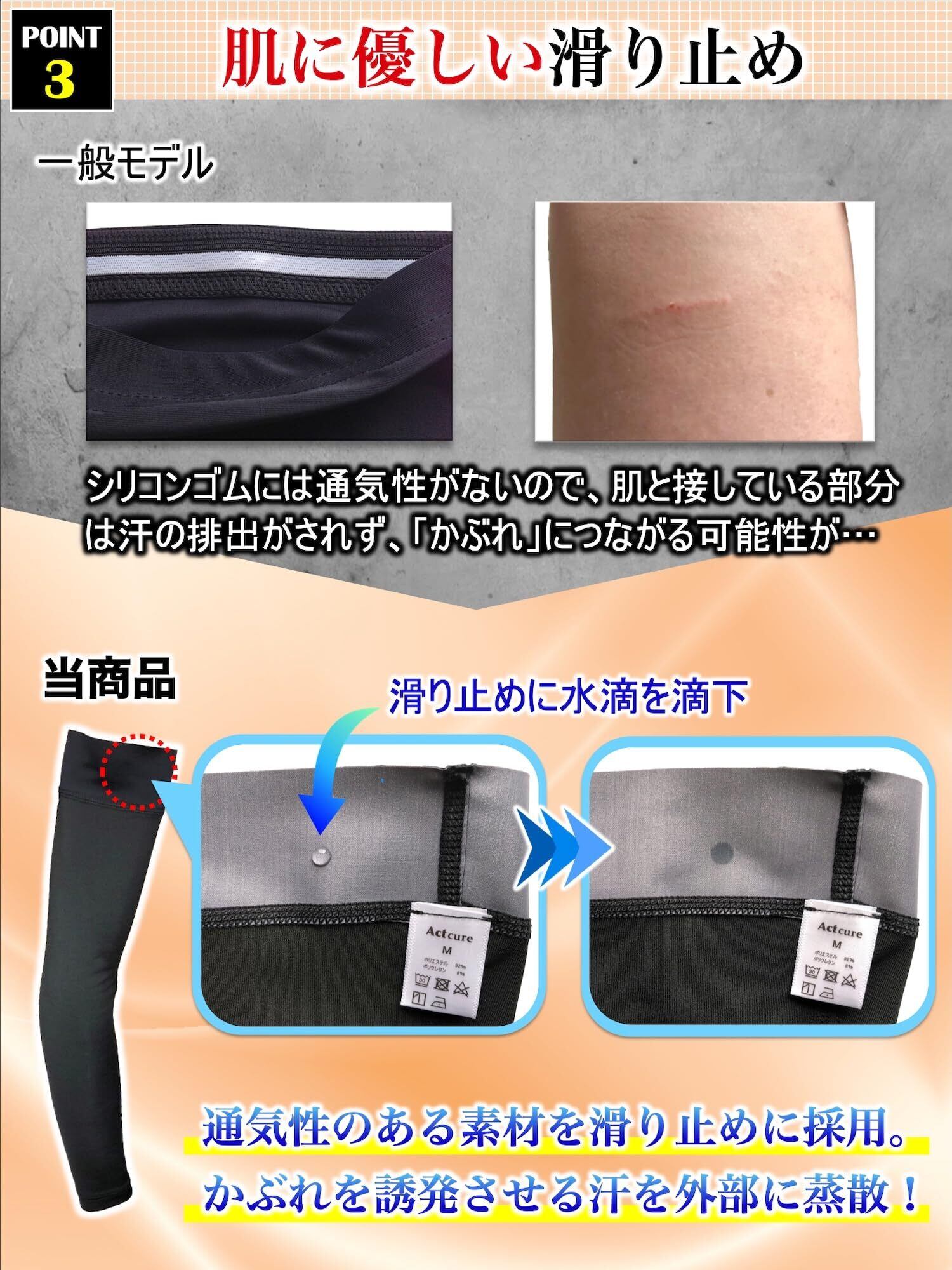 ずれ落ちを防止する滑り止めは、吸水性のあるしっとりソフトな素材を採用することで汗を外部に蒸散させることができ、汗かぶれを引き起こしにくくしています。