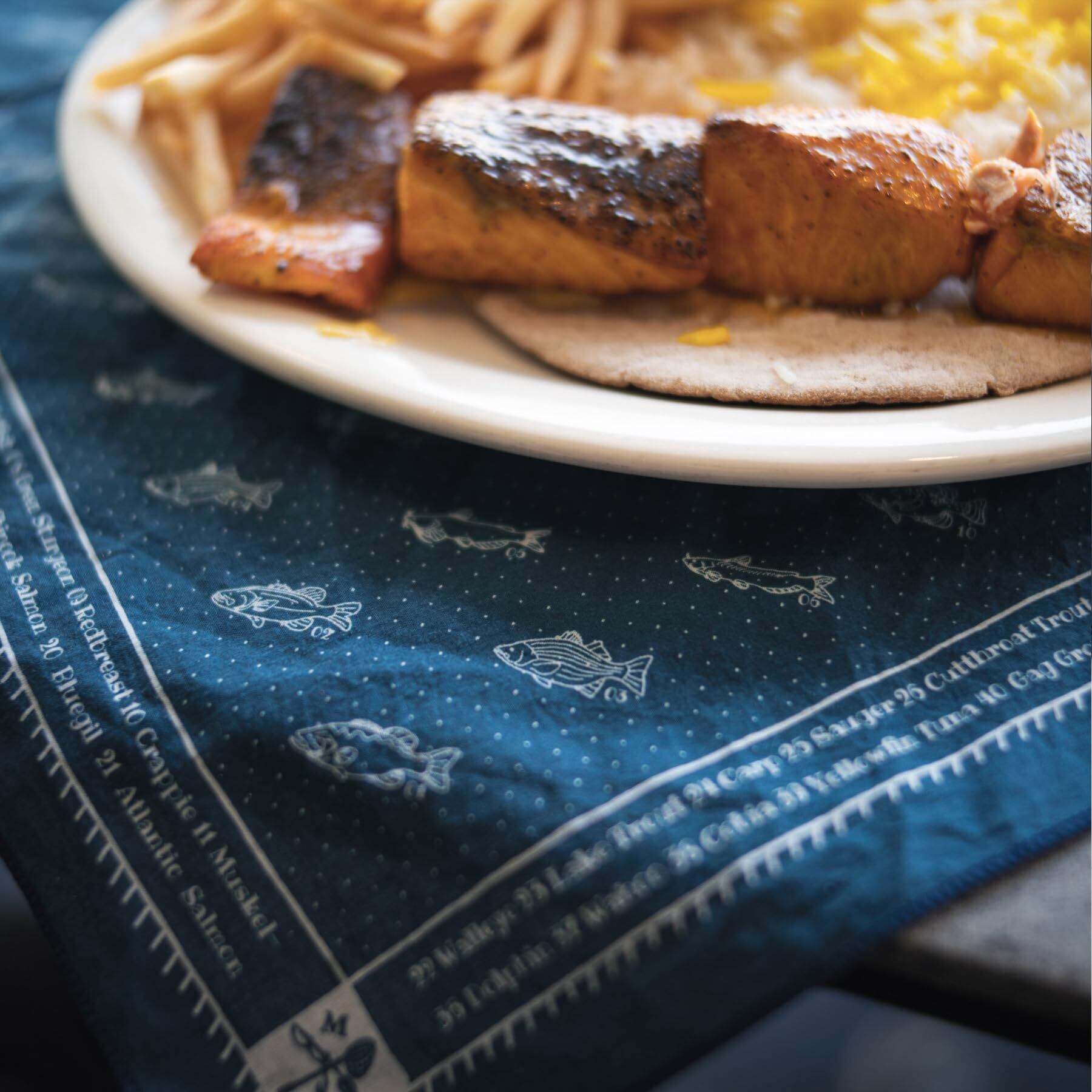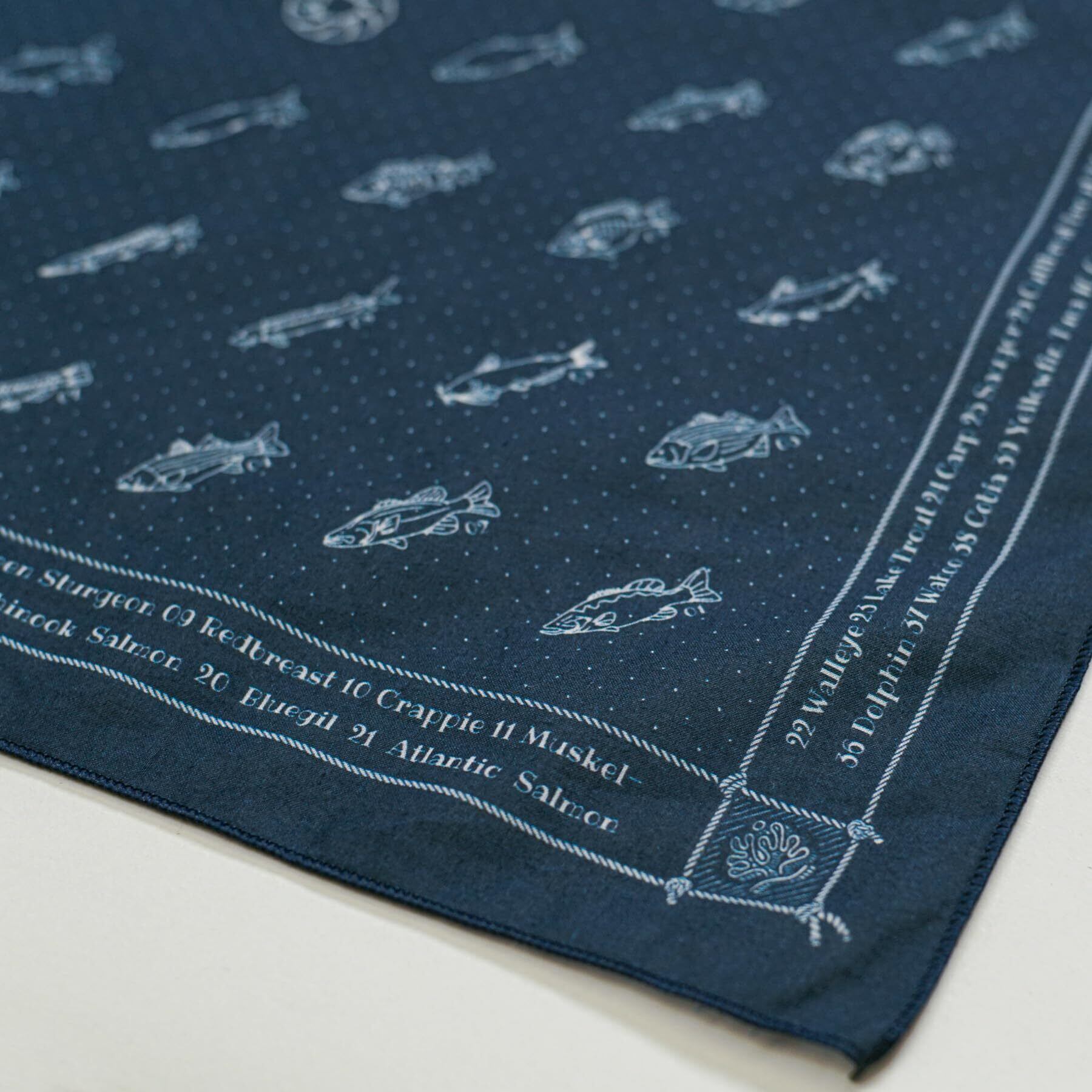 【釣り好き必見】48種類の人気魚(淡水&海水)を手描きイラストでデザインした、釣り人のためのバンダナ。