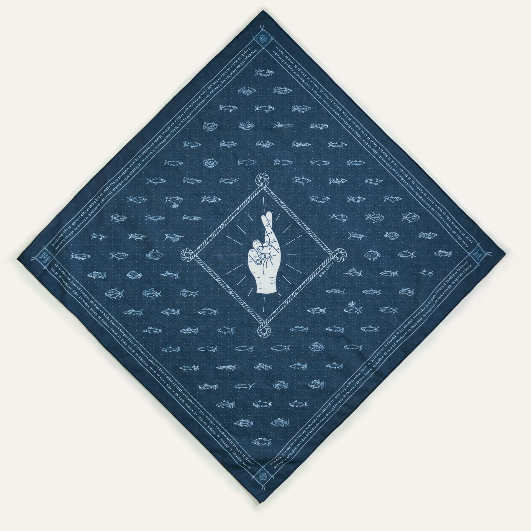 このバンダナは、釣りを愛するすべての人のためにデザインされた特別な一枚。しっかり織られた100%プレミアムコットンで作られており、柔らかく肌にやさしい着け心地です。汗を拭いたり、緩んだギアを固定したり、ハイキングやフィッシングなどのアウトドアで活躍します。 22インチ(約55cm)のバンダナ 大判には、淡水魚・海水魚を含む「48種の人気ゲームフィッシュ」が精密な手描きイラスト&名称入りで描かれています。まさに釣り人のマストアイテム! カリフォルニアで心を込めて手描き&デザインされたこのバンダナは、風呂敷として使ったり、バンダナキャップとして頭に巻いたりと多用途で使えます。父の日・誕生日・クリスマスなど、釣り好きな方へのギフトにもおすすめです。