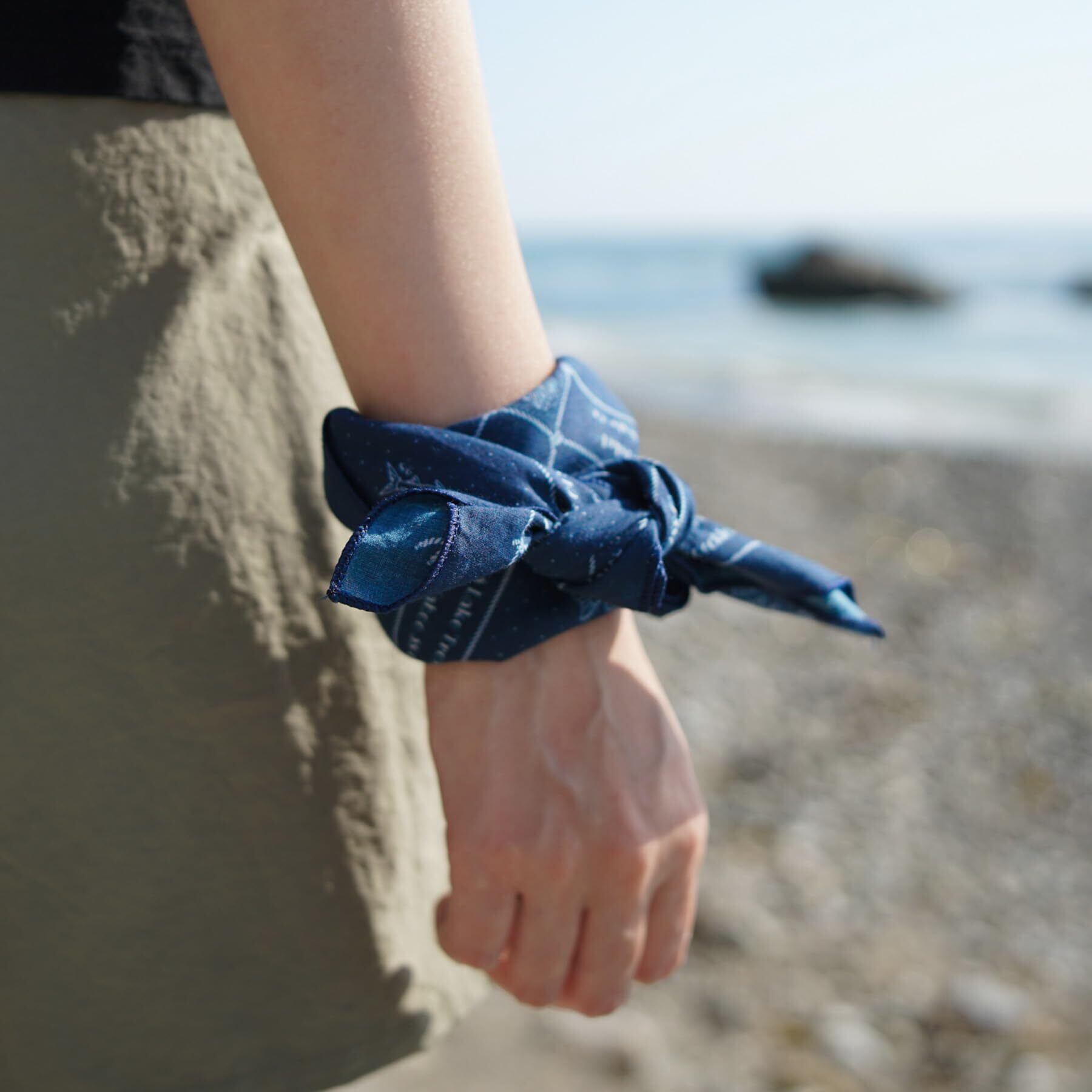 [WHTE MOSS] 綿100%ハンカチーフ・ヘッドバンダナ 蓝