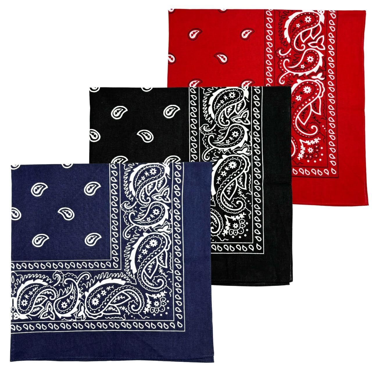 バリューパック:27インチ×27インチの特大バンダナを3本セットで手に入れ、さまざまなスタイリングニーズに対応する汎用性と価値を提供します。