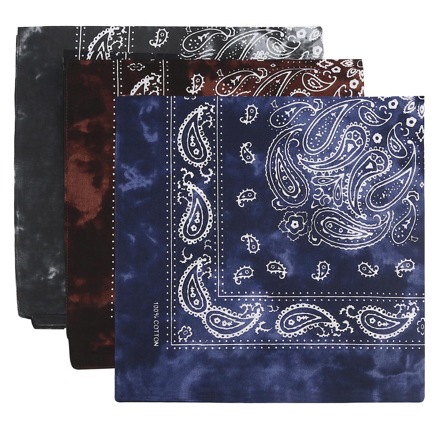 [Trifong] バンダナ ユニセックス 綿100% コットン カシューナッツ柄 ペイズリー ハンカチ 大判 55㎝×55㎝