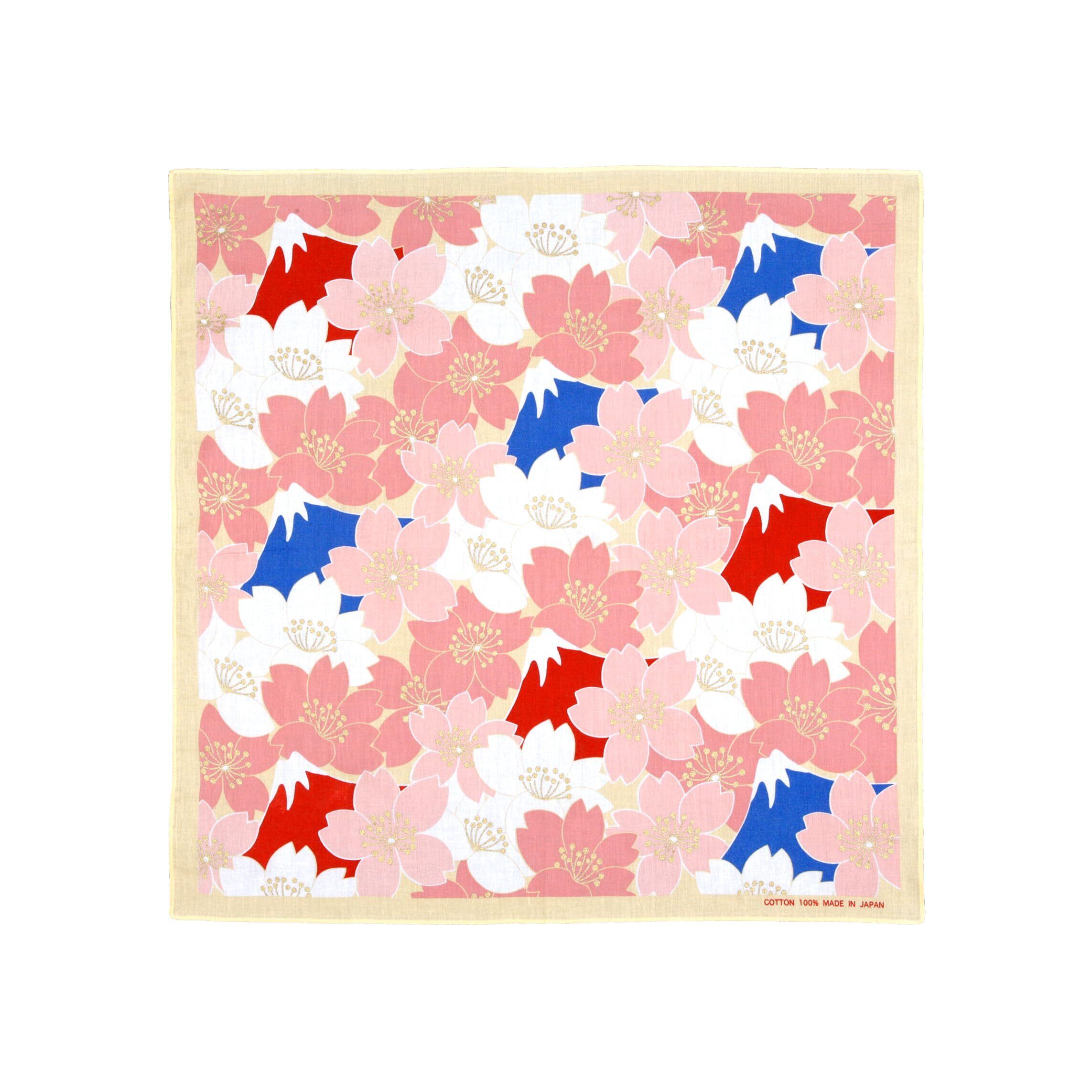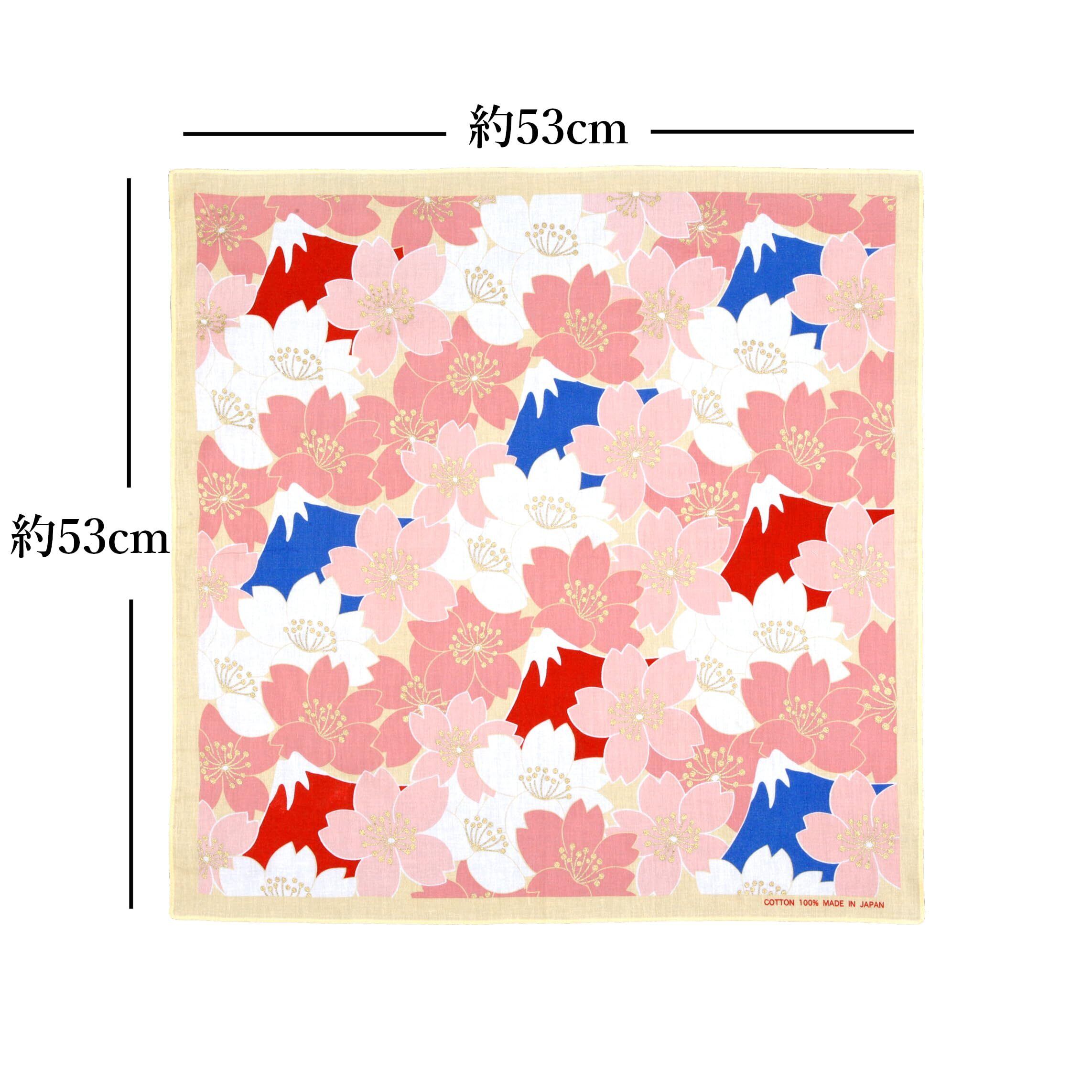 日本の象徴である富士山と、春を彩る桜を組み合わせた美しいデザインのバンダナです。 富士山の雄大な姿と、満開の桜が織りなす華やかなコントラストが、日本の四季の美しさを表現しています。 綿100%の柔らかな素材で、バンダナとしてはもちろん、スカーフやハンカチ、インテリアとしても活用可能。 日本らしいお土産や、外国の方への贈り物にも最適です。
