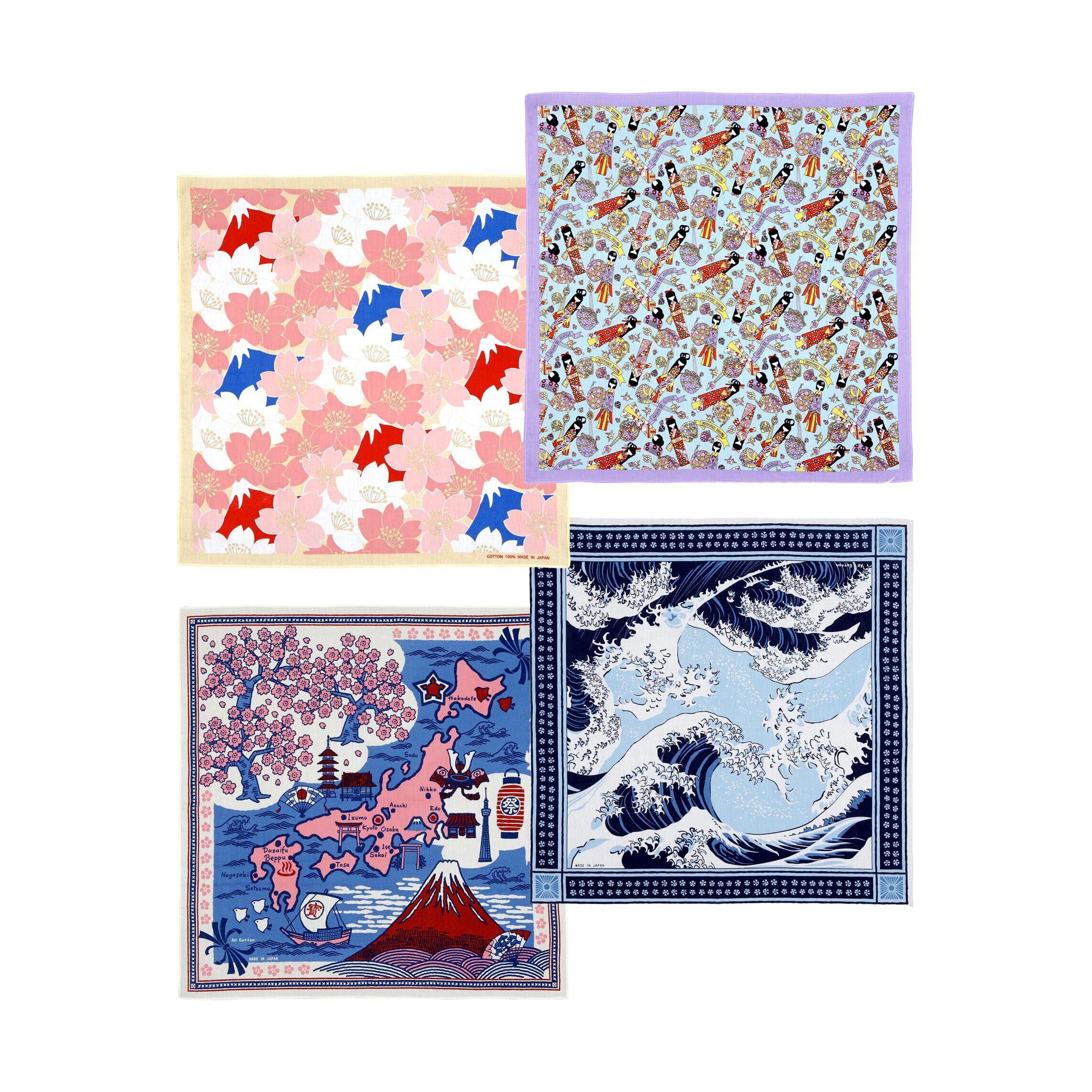 商品名: 日本バンダナ「富士と桜」 サイズ: 約53cm × 53cm 素材: 綿100%(日本製) 特徴: 富士山と桜を描いた日本らしいデザイン ハンカチやスカーフとしても使用可能な柔らかい綿100%素材 日本文化を感じられるアイテムで、外国の方へのプレゼントにも最適