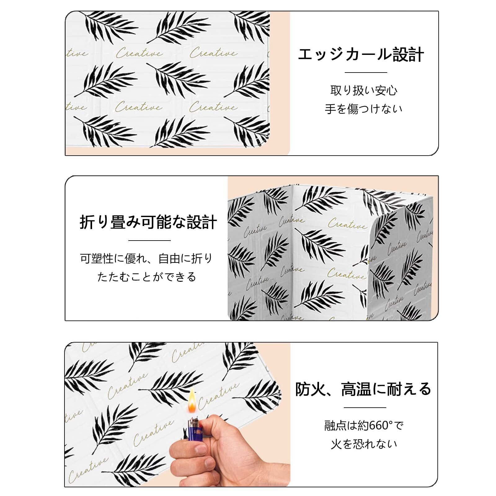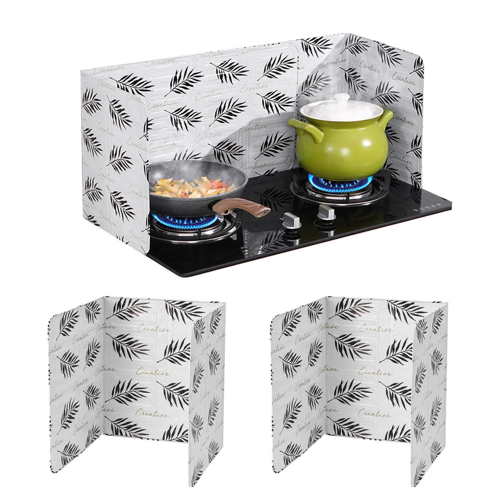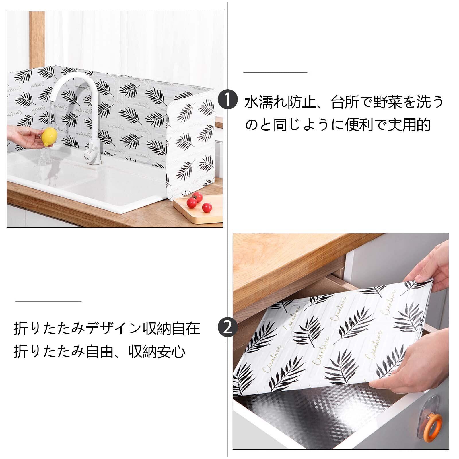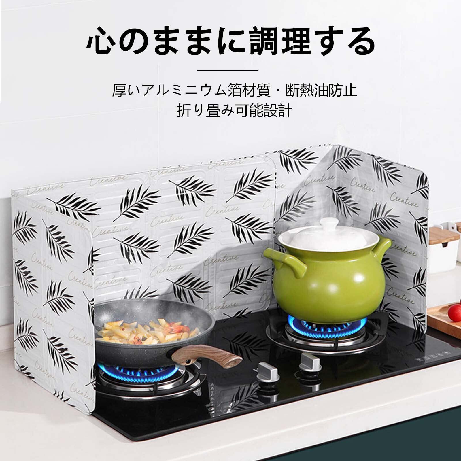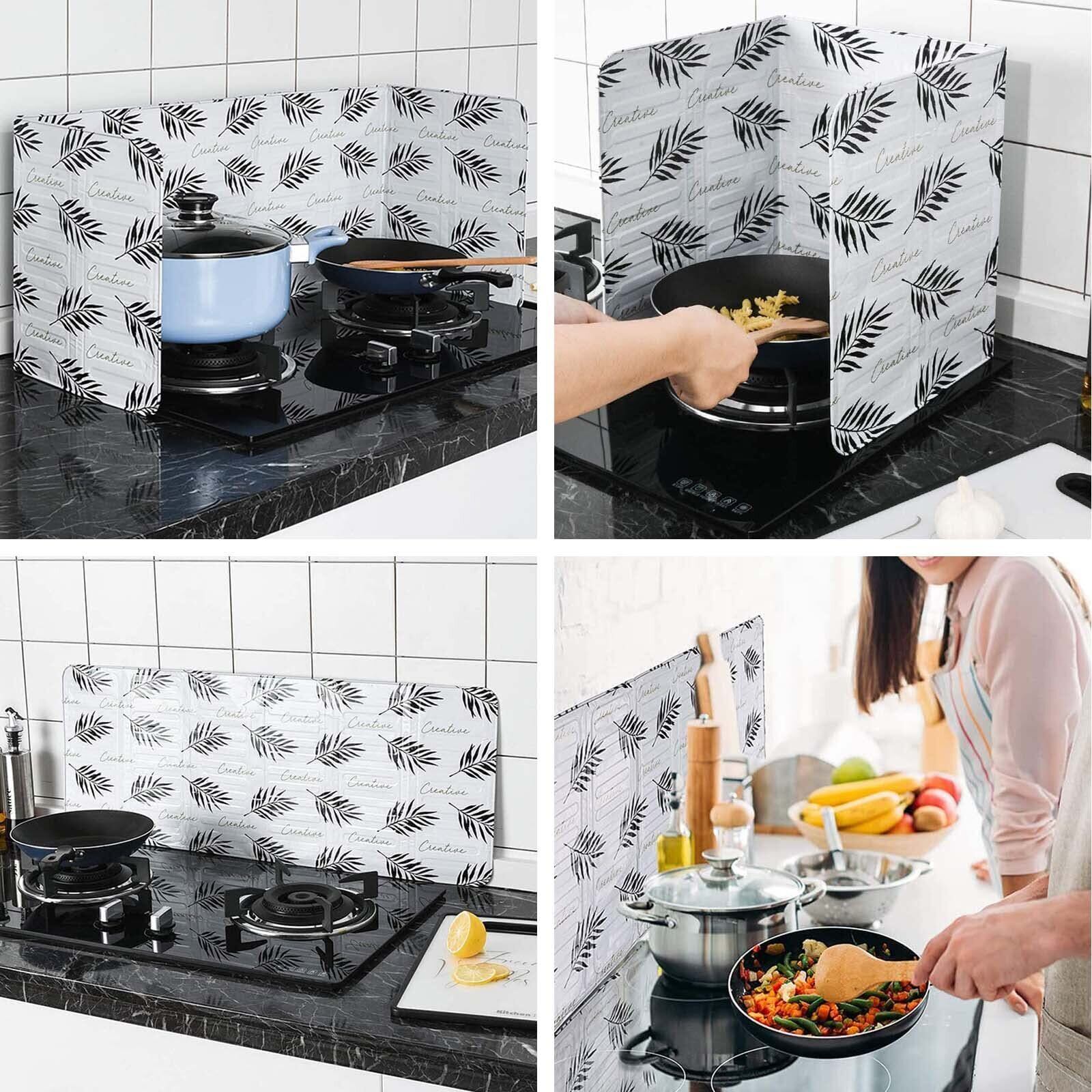【折りたたみ式のデザイン】:折りたたむことができ、収納に便利です。キッチンスペースを取りません。キッチン周りの油はね防止に大活躍!常にコンロ周りを綺麗に保ちたい方にオススメします。