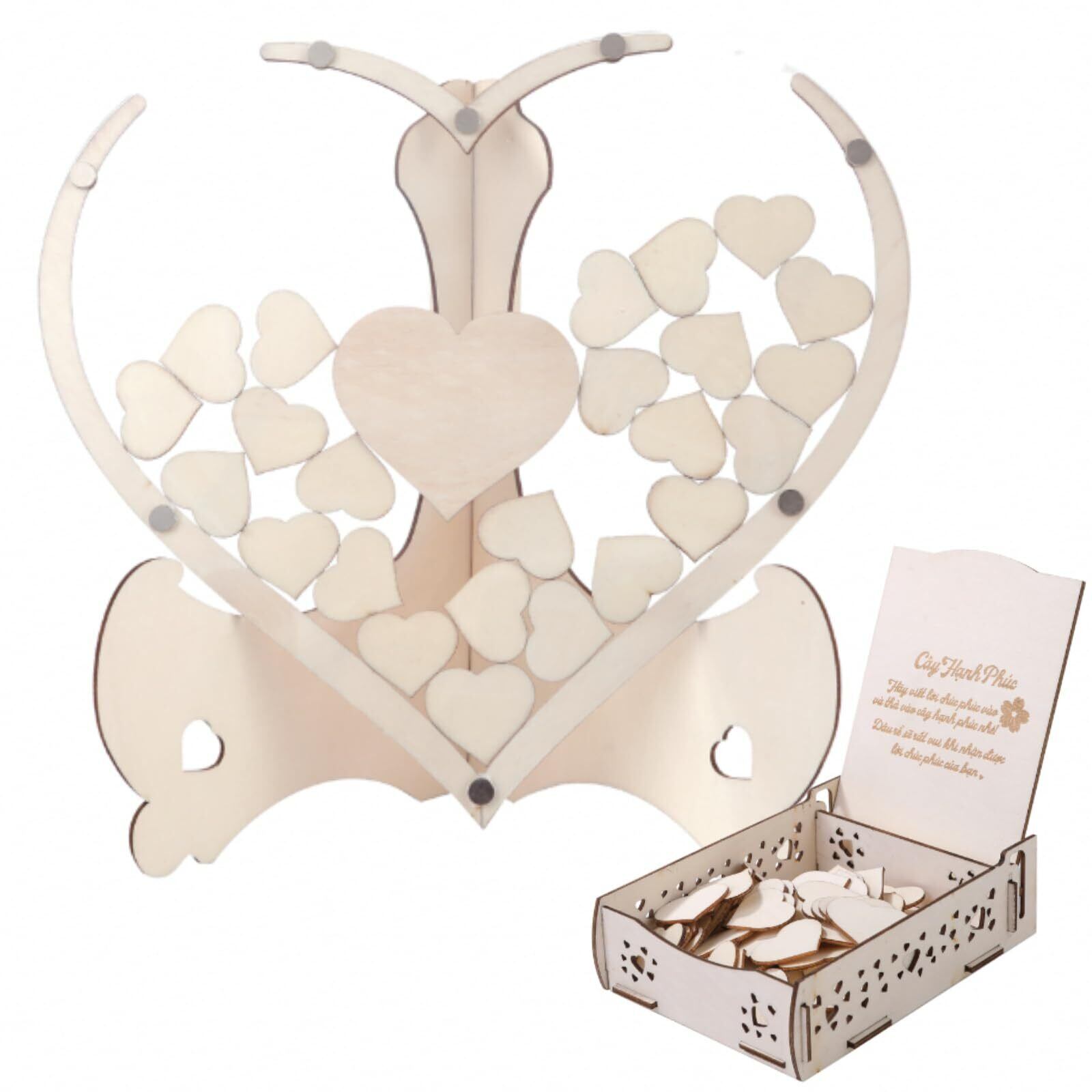 Sweet Plus ウェルカムボード 参加型 結婚証明書 ウェディングドロップス 結婚式 披露宴 パーティー 受付 寄せ書き メッセージボード お出迎えアイテム 木製チップ付き 収納箱付き (ハート型)