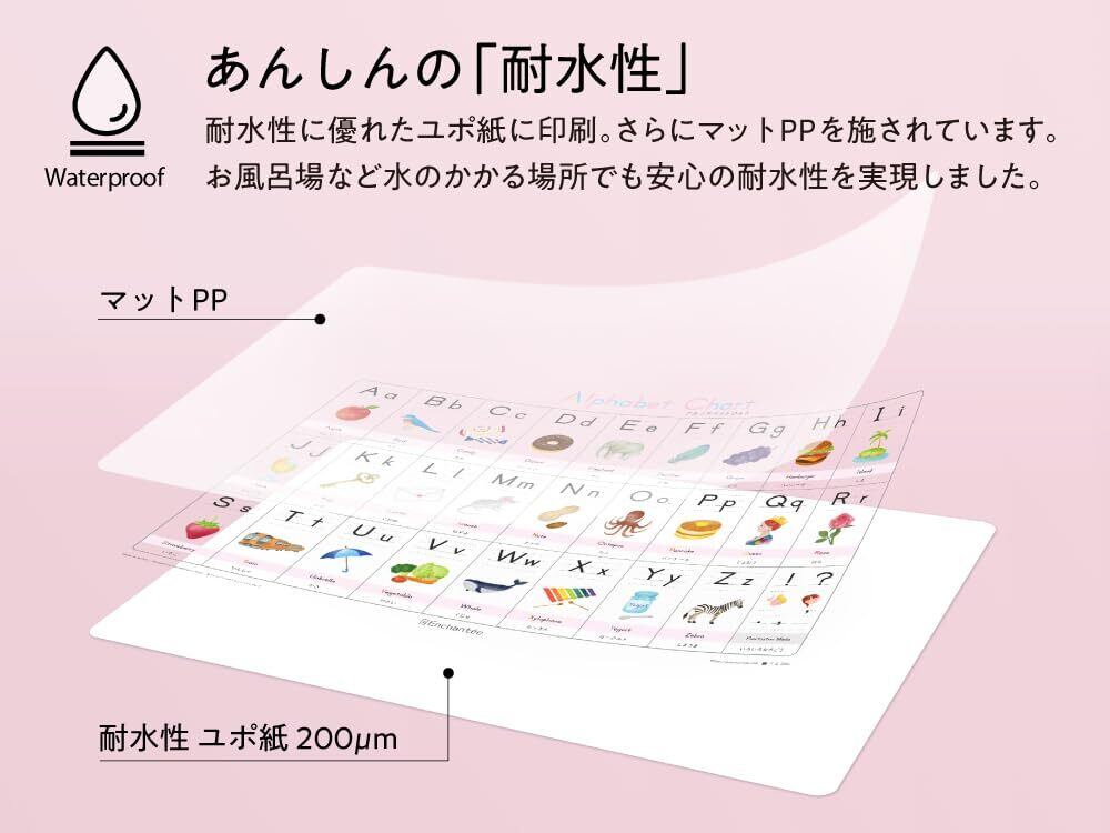【防水】水に強いユポ紙に印刷。いつでも清潔に保てます。またお風呂でも使用できます。