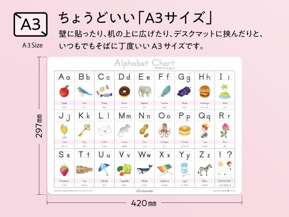 【A3サイズ】どこでも手軽に貼れる、ちょうどいいA3サイズのアルファベット表です。