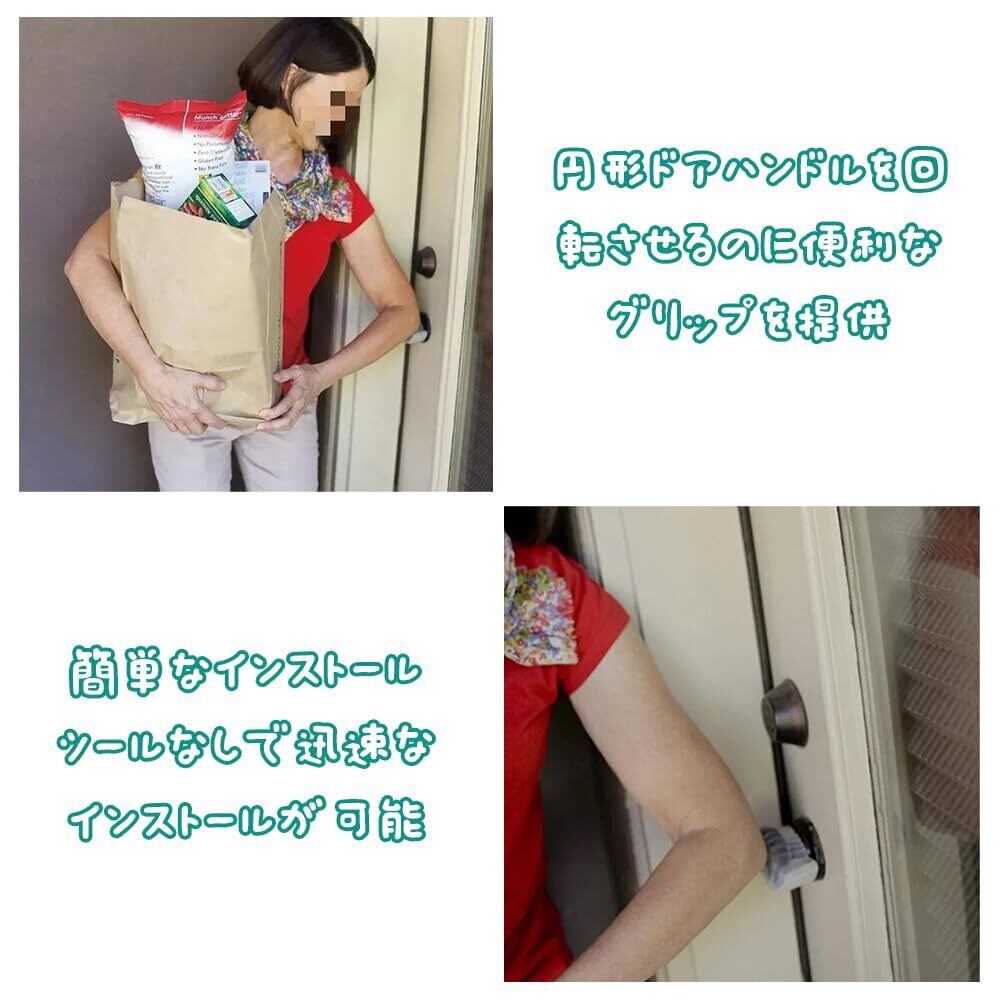 【楽にドアを開けられる】扱いにくい丸いドアノブを簡単に回すことができ、弱い手や年配の方のグリップ力を向上させます。誰でも指や肘、閉じた拳でドアノブを回すことができます。食後に手を洗うためにドアを開けたいとき、丸いドアノブが開かなくなる心配はもうありません。