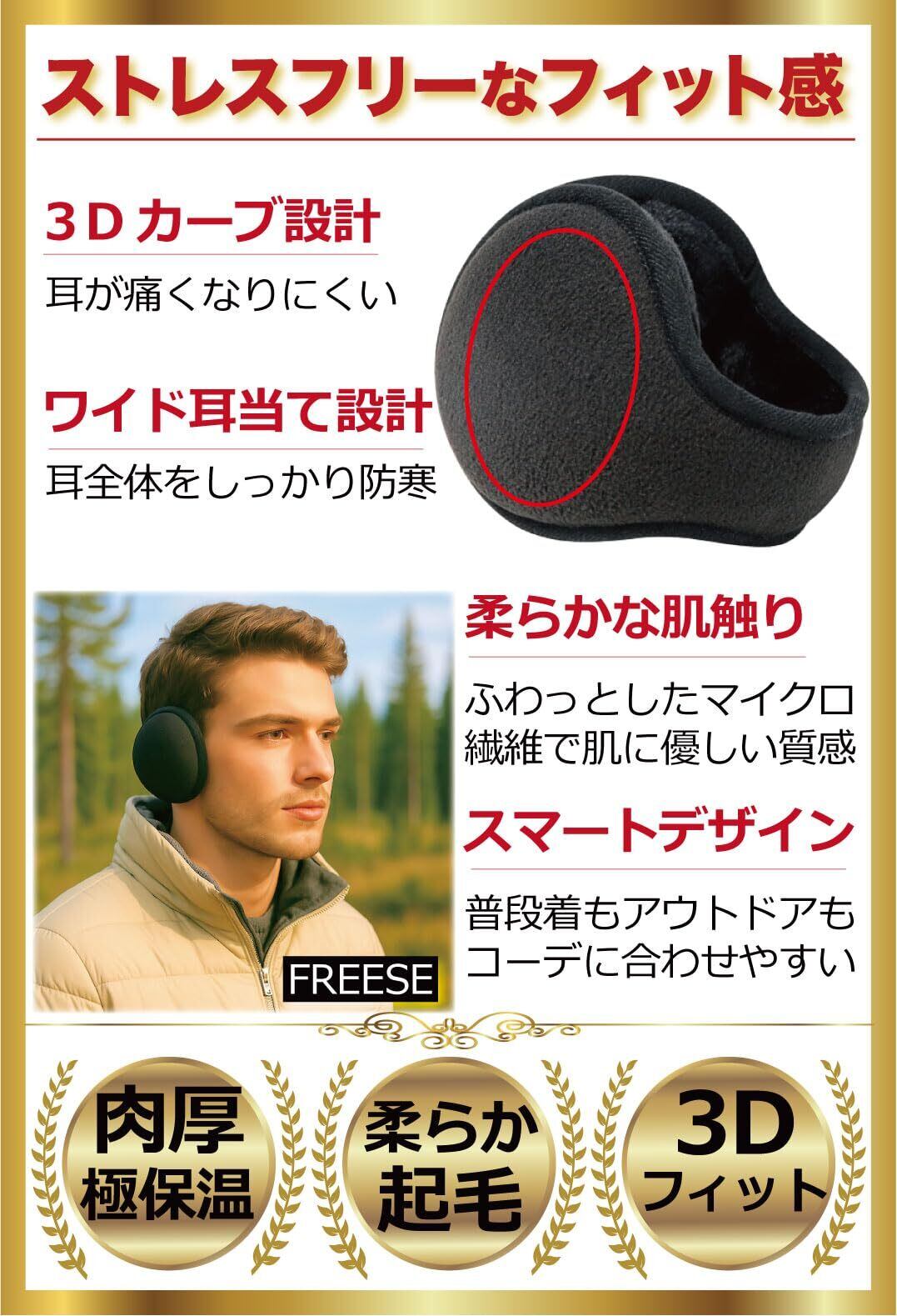 [FREESE] イヤーマフ 防寒 イヤーウォーマー 耳当て 肉厚ボア 裏起毛 冬 スポーツ 登山 釣り メンズ