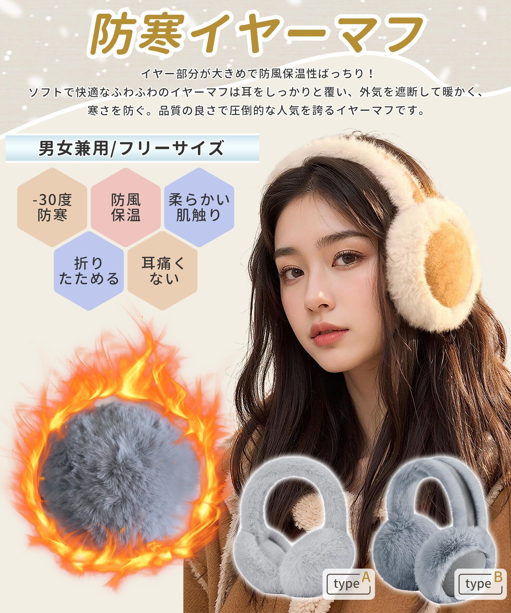 【ふわふわ極上の肌触り ・TYPE Aのみ洗濯可能】このイヤーマフはの内側に使用されているのは、厳選された高品質のロングパイルファー素材。その特徴は、何と言っても比類なき柔らかさと滑らかさ。イヤーマフの耳に当たる部分は、まるでうさぎの毛並みを思わせるような、驚くほどのなめらかさとふわふわ感。イヤーマフは耳を優しく包み込み、チクチク感やかゆみ、擦れによる不快感は一切なし。イヤーマフは長時間の使用や繰り返しの着脱にも耐える上質なファーを使用しているため、耳の皮膚を優しく保護し、摩擦による負担を最小限に抑えます。また、イヤーマフ レディース 取り外し可能なので、定期的に水で洗うことができて、いつも清潔に保つことができます。(TYPE Aのみ洗濯可能)