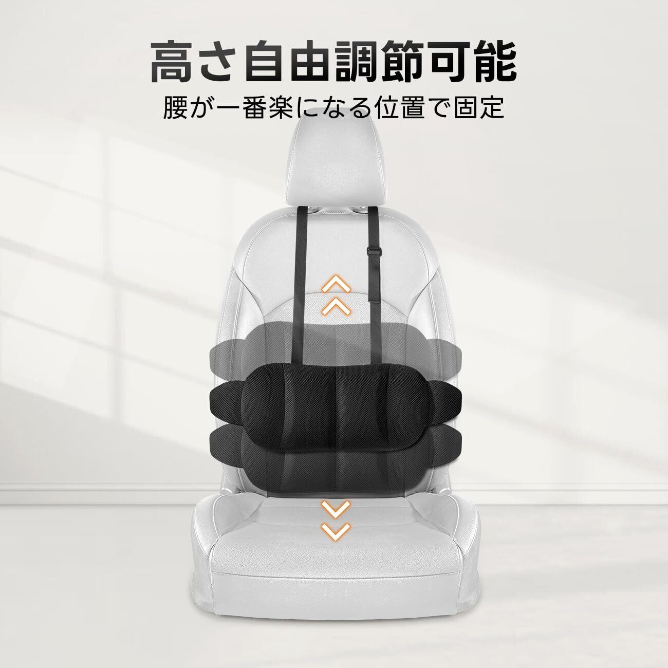 ランバーサポート オフィス 腰シートクッション 腰当て 椅子 高さ調節可能 簡単取り付け 滑り止め 通気性 取り外し洗えるカバー 腰痛対策 長時間座る 快適サポート 腰枕 腰痛改善 低反発 自宅/オフィス/ゲーミングチェア/車用 父の日 母の日 誕生日プレゼント ブラック (車用 グレー)