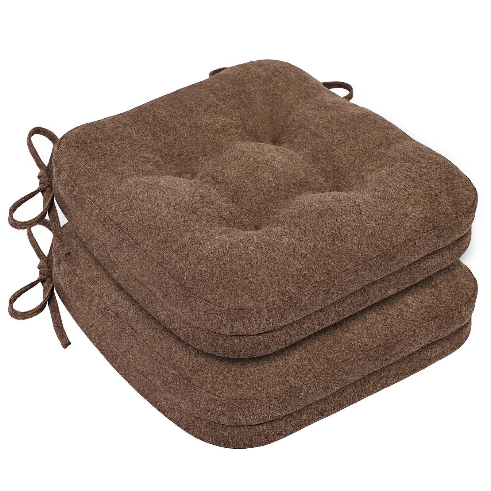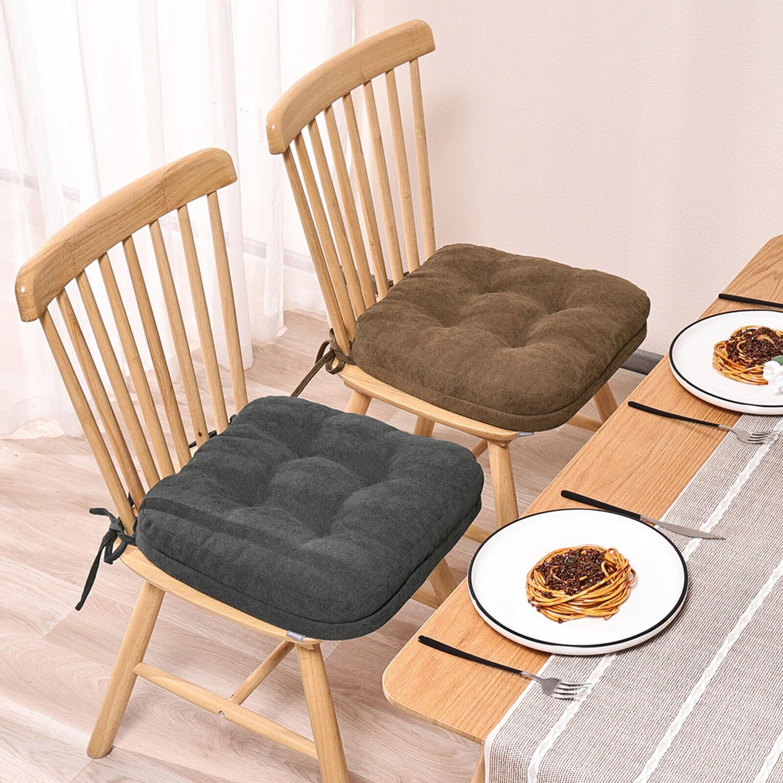 Shinnwa 座布団 クッション 椅子用クッション 厚め7cm 低反発+高反発 二層構造 竹炭入り 除湿消臭 お尻が痛くならない ざぶとん 馬蹄型 ダイニング チェア フロアクッション 紐付き 滑り止め (42X41X7cm厚み, コーヒー2枚セット)