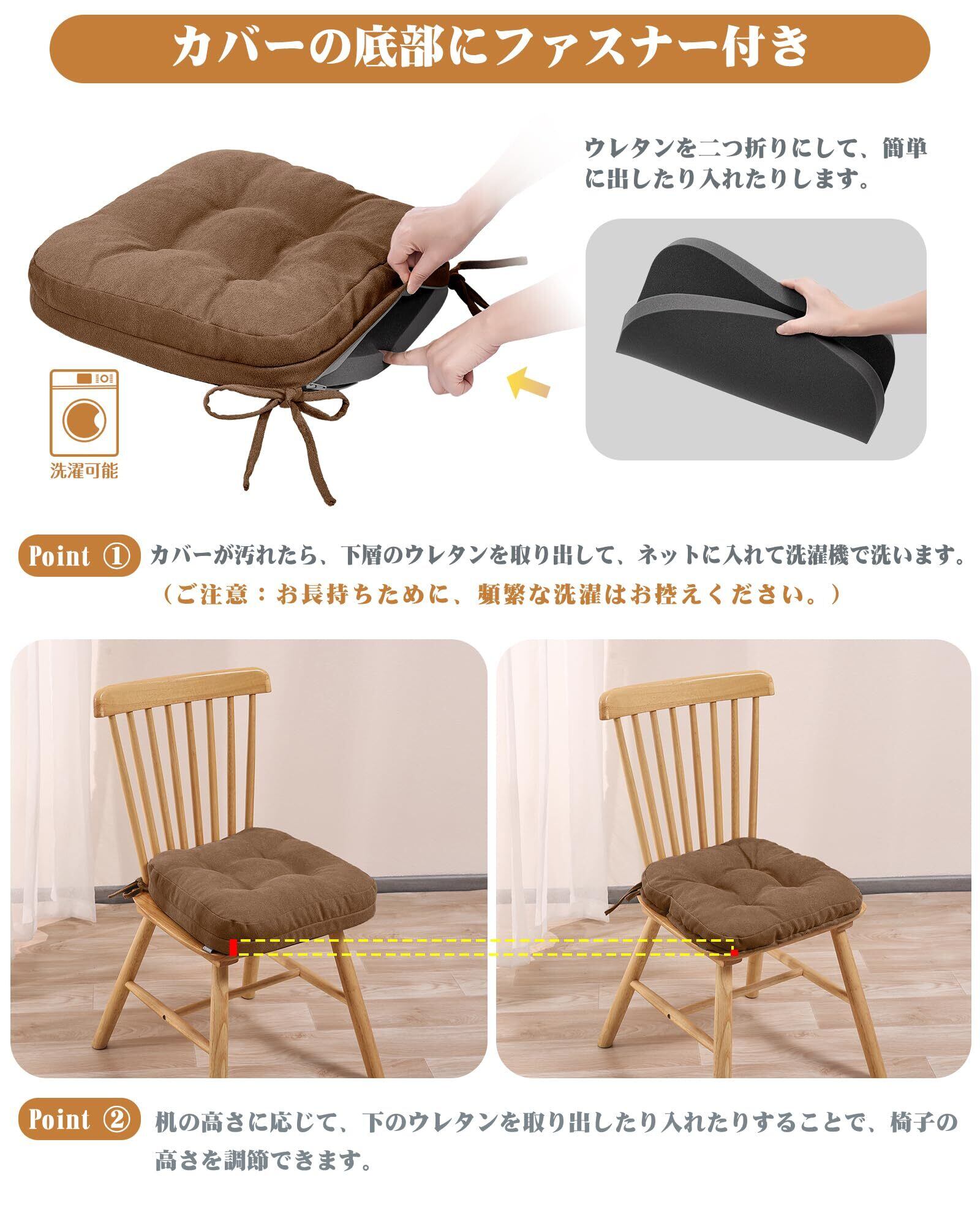 【底部にファスナー仕様】座布団カバーの底部にファスナーが付いていて、机の高さに応じて、下のウレタンを取り出したり入れたりすることで、椅子の高さを調節できます。また、カバーが汚れたら、下層のウレタンを取り出して、ネットに入れて洗濯機で洗います。(ご注意:お長持ちために、頻繁な洗濯はお控えください。)